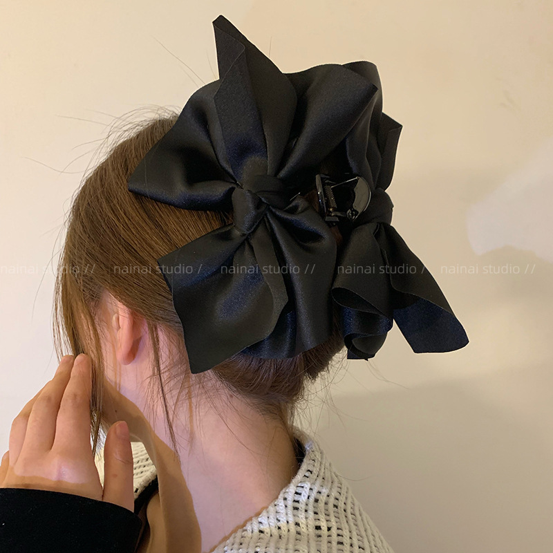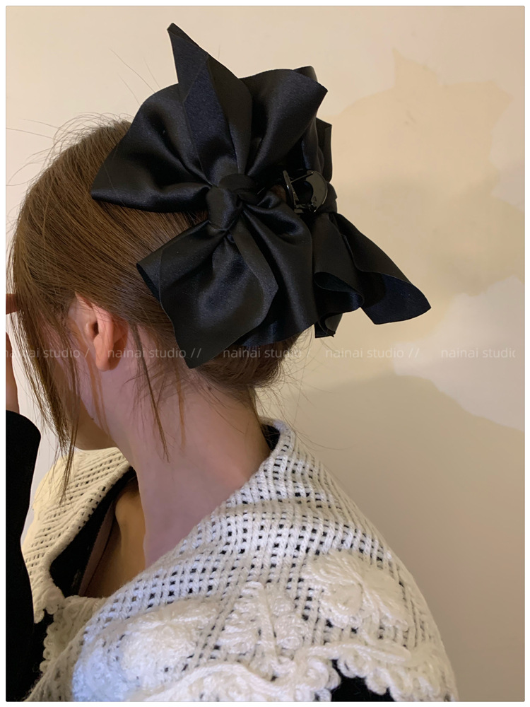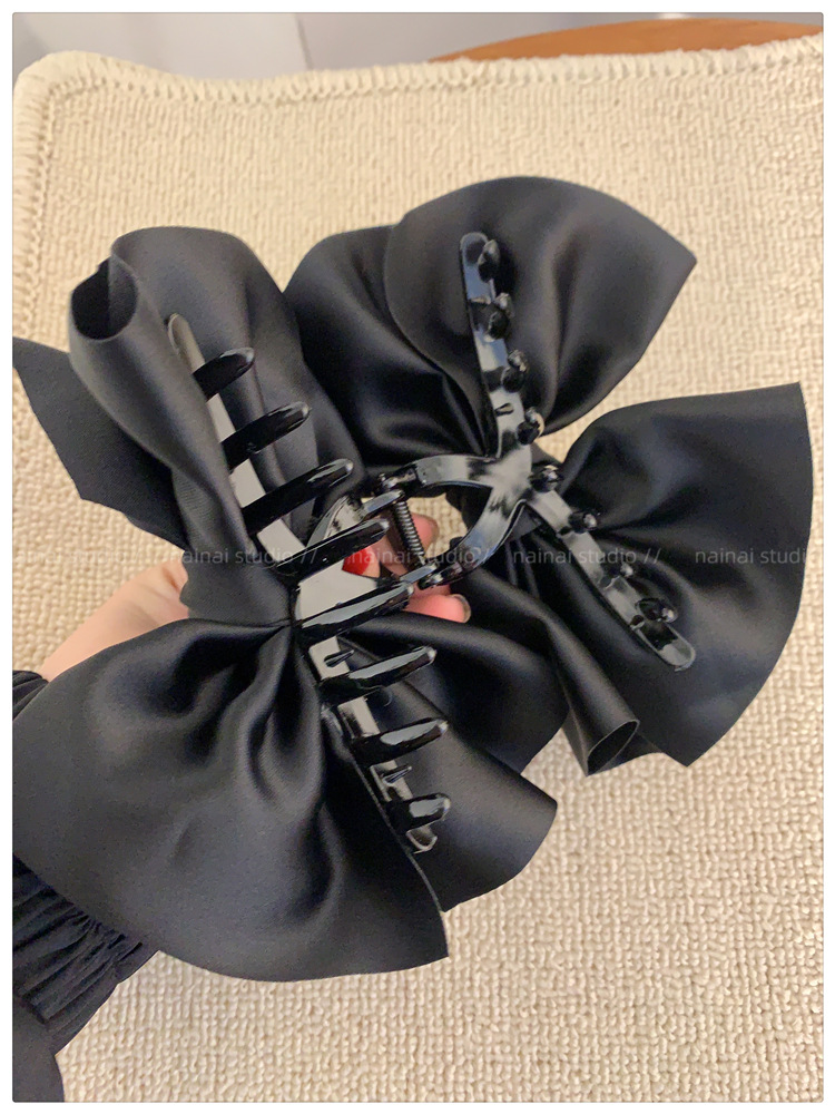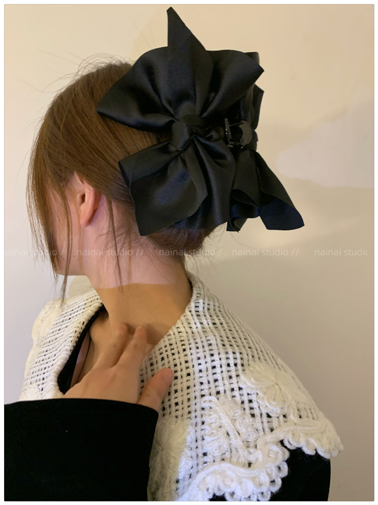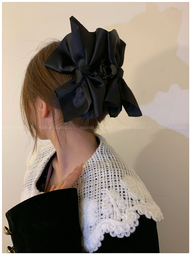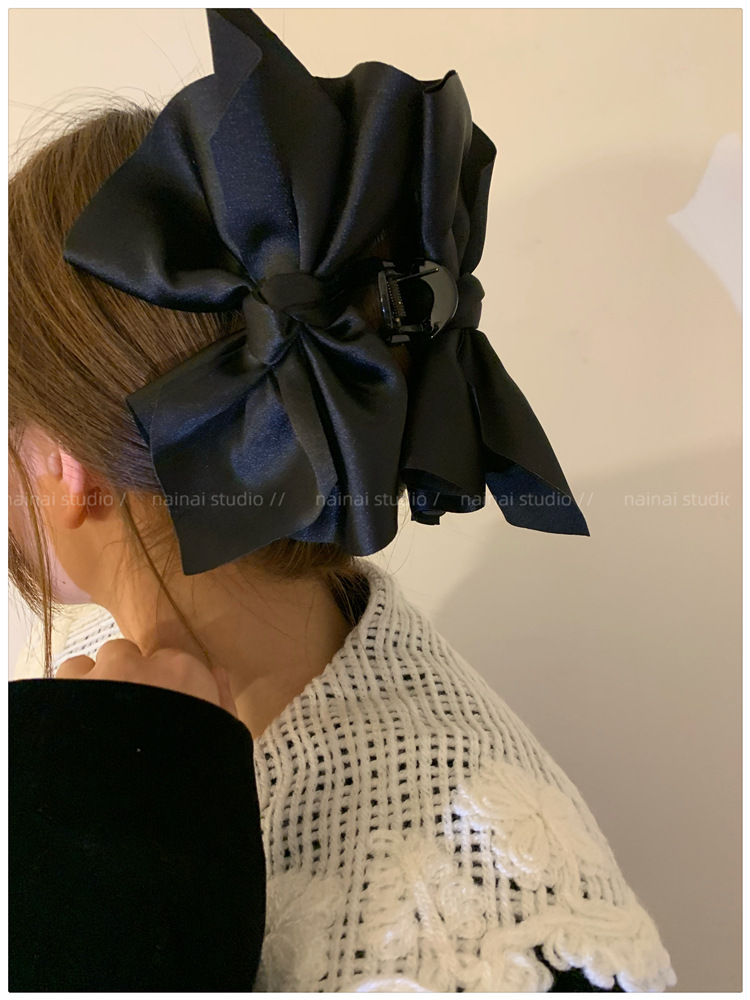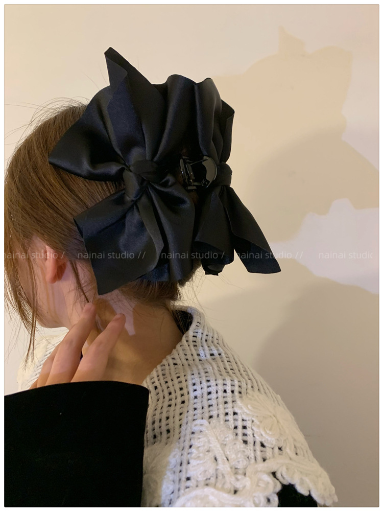 超大蝴蝶结抓夹~黑色缎面高级感后脑勺盘发鲨鱼夹子法式发抓头饰