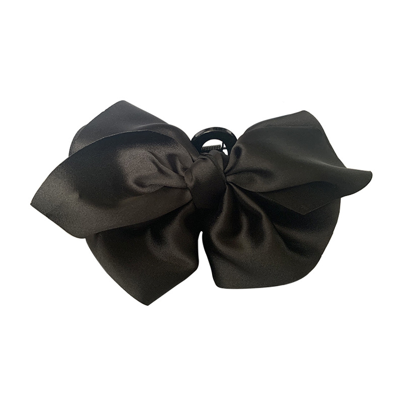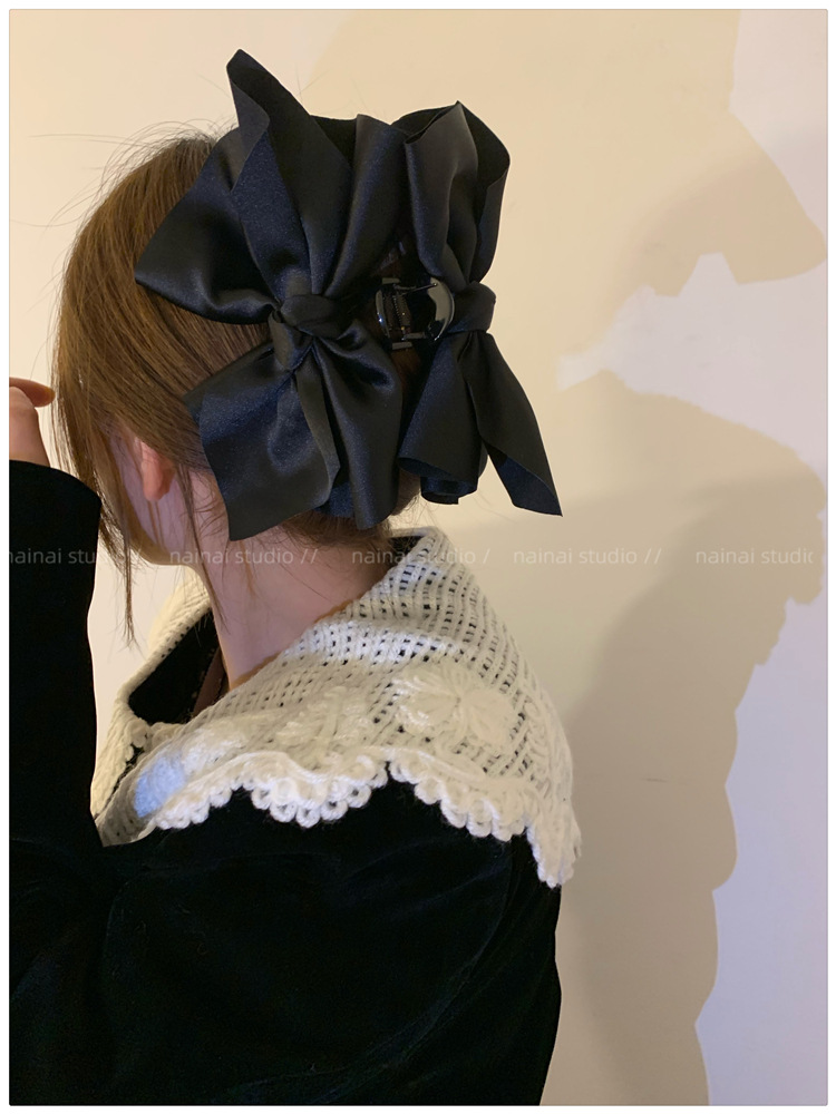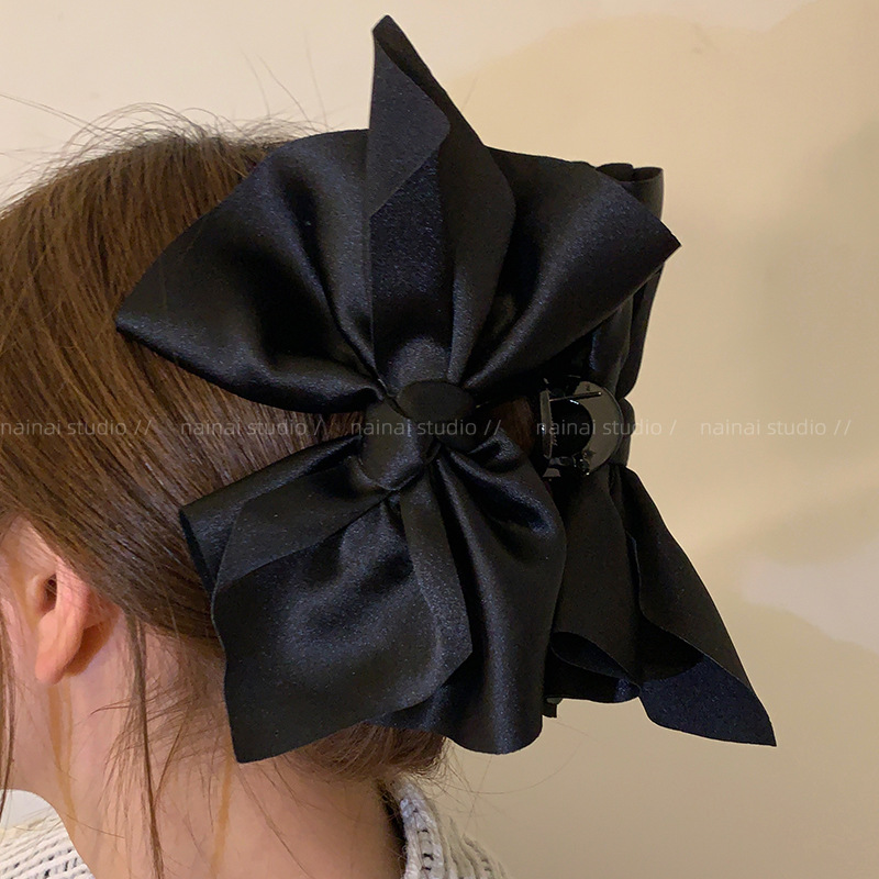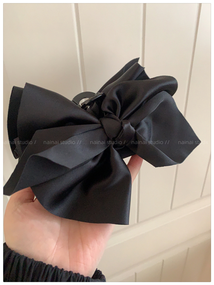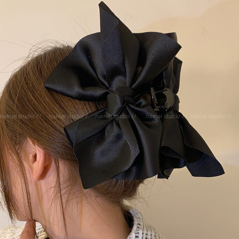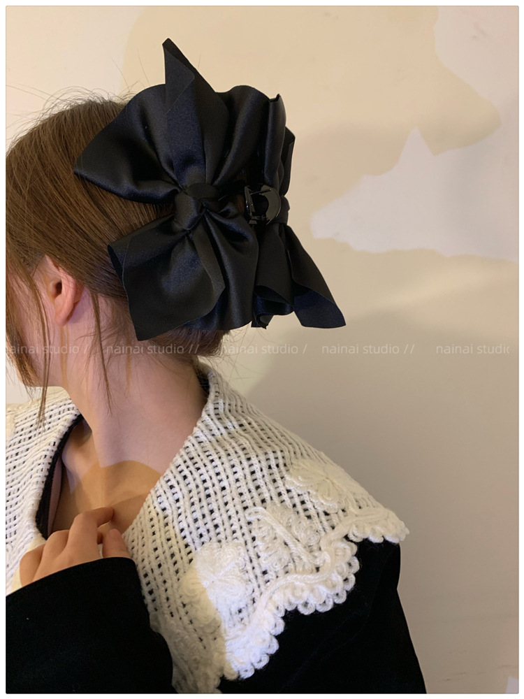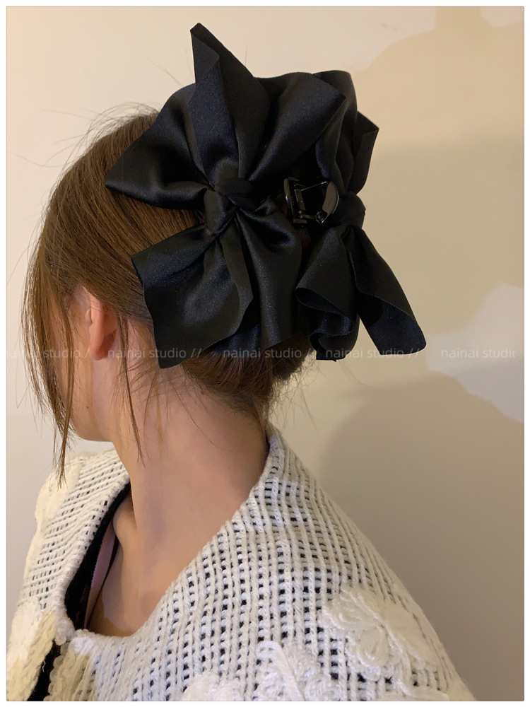 超大蝴蝶结抓夹~黑色缎面高级感后脑勺盘发鲨鱼夹子法式发抓头饰