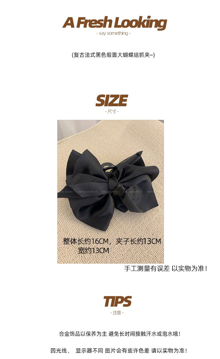 超大蝴蝶结抓夹~黑色缎面高级感后脑勺盘发鲨鱼夹子法式发抓头饰 投诉