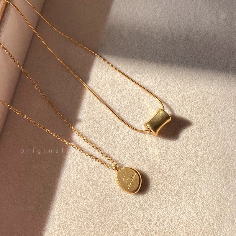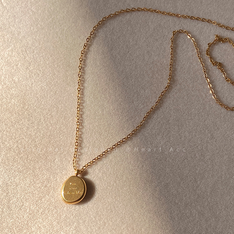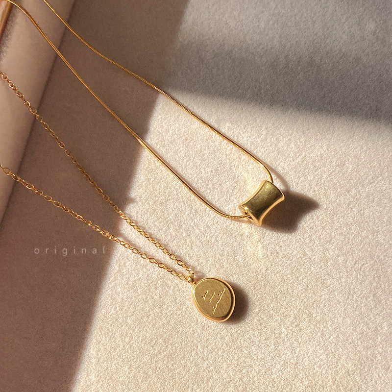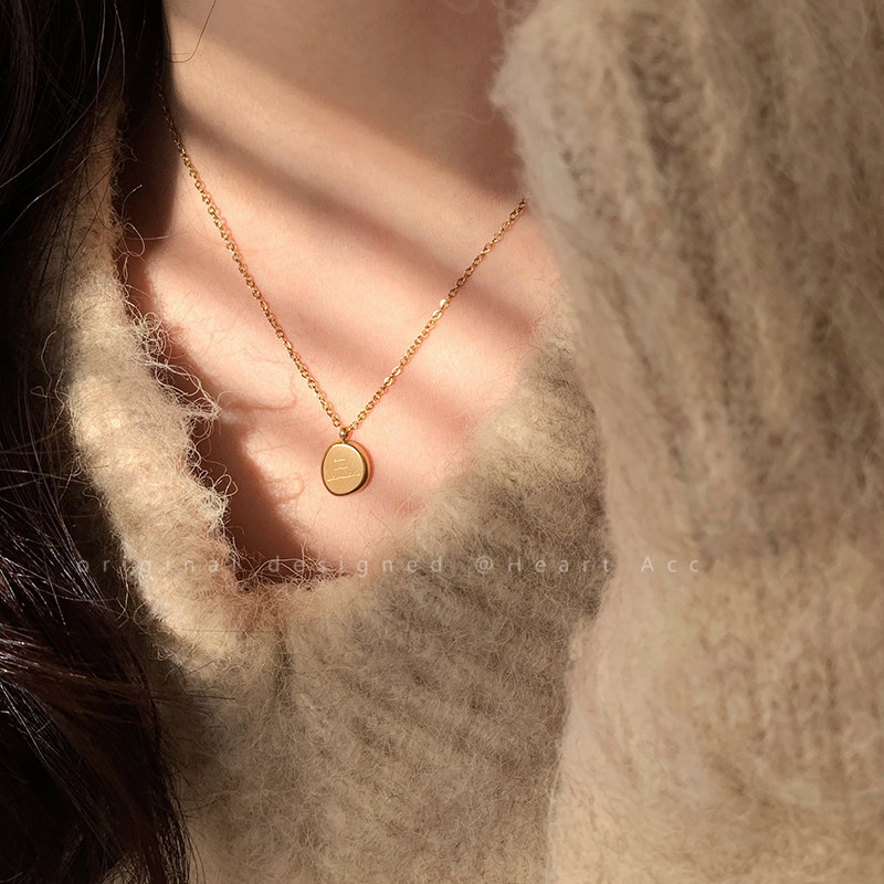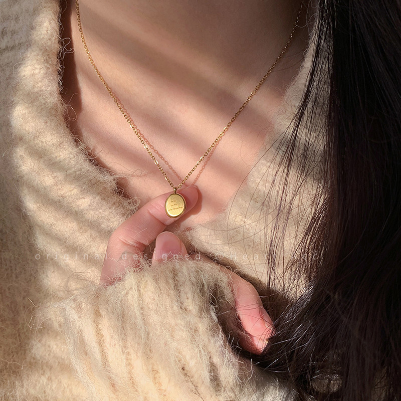 金色字母小金豆圆牌不锈钢项链2025新款轻奢极简风锁骨链吊坠配饰
