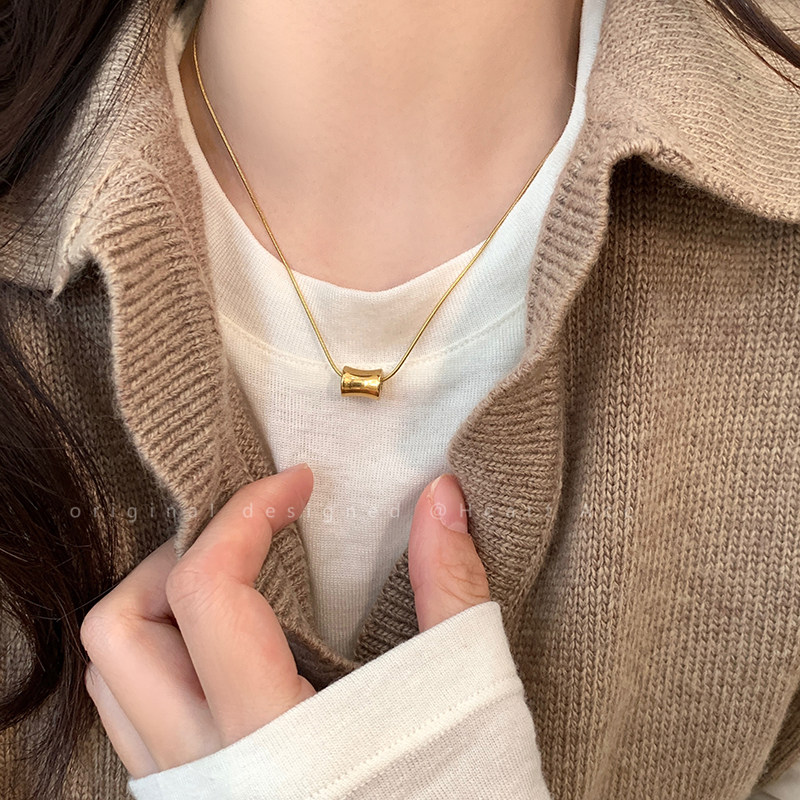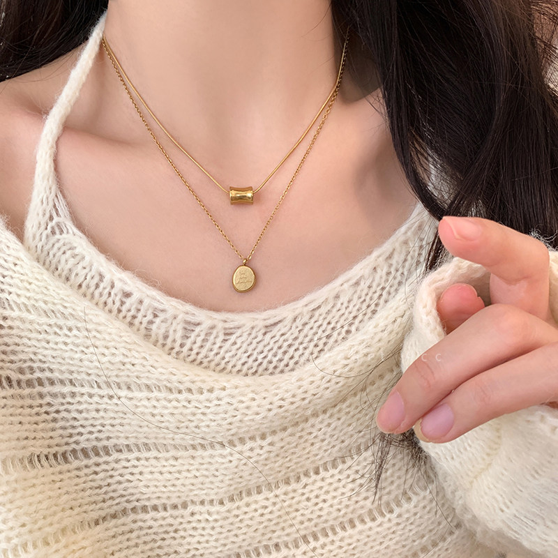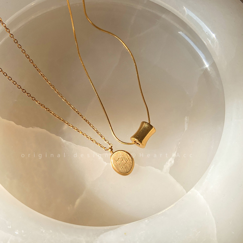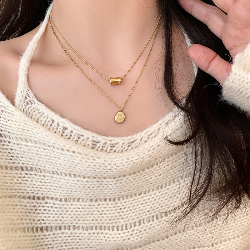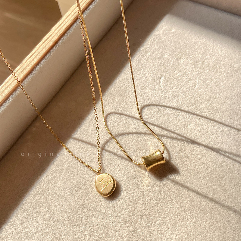 金色字母小金豆圆牌不锈钢项链2025新款轻奢极简风锁骨链吊坠配饰