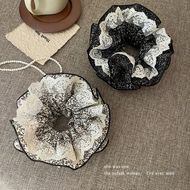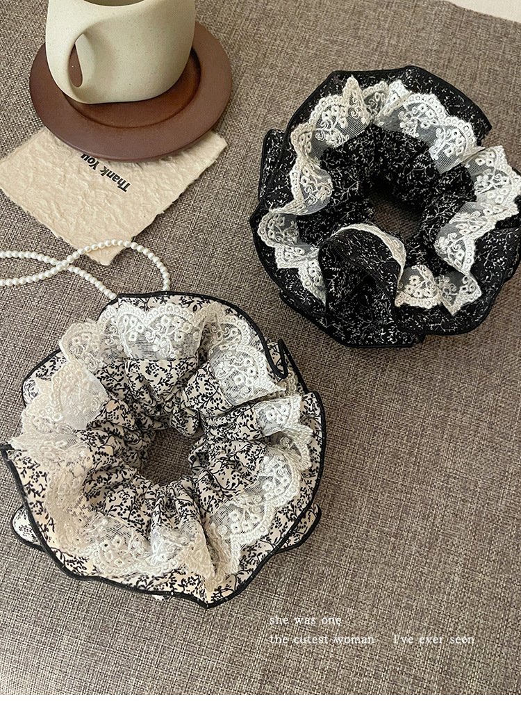 碎花蕾丝双层大肠发圈