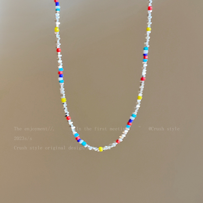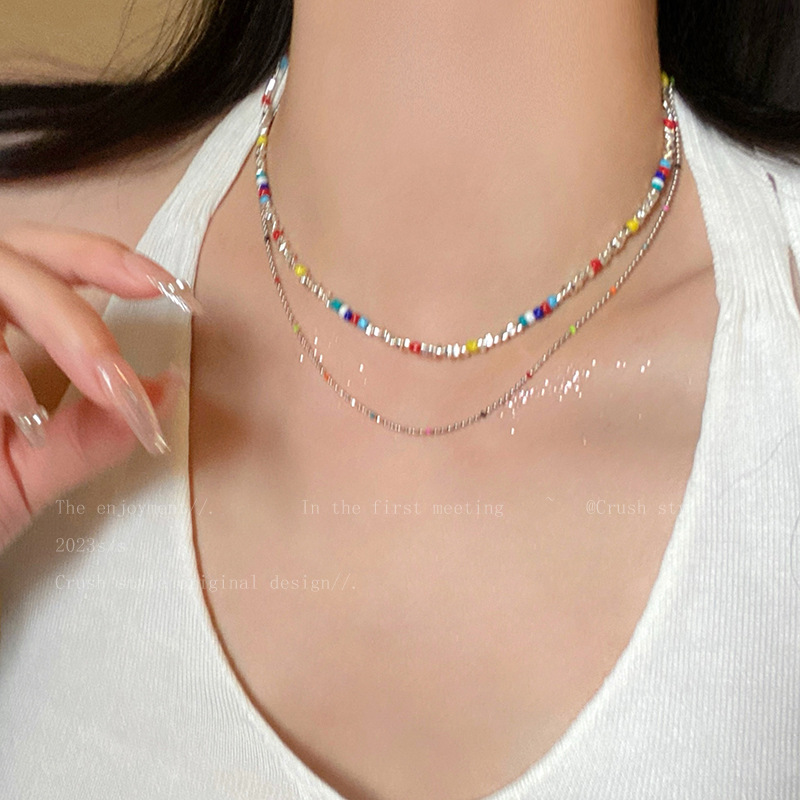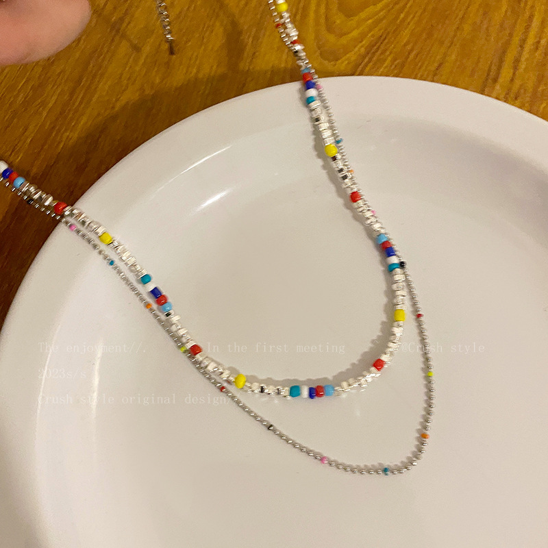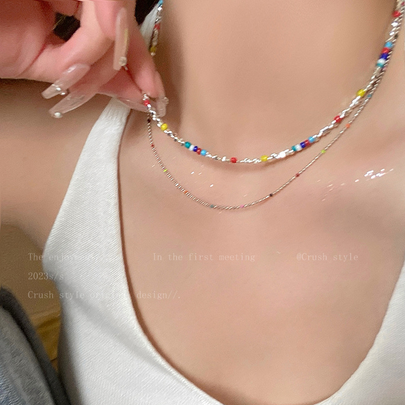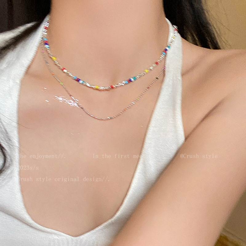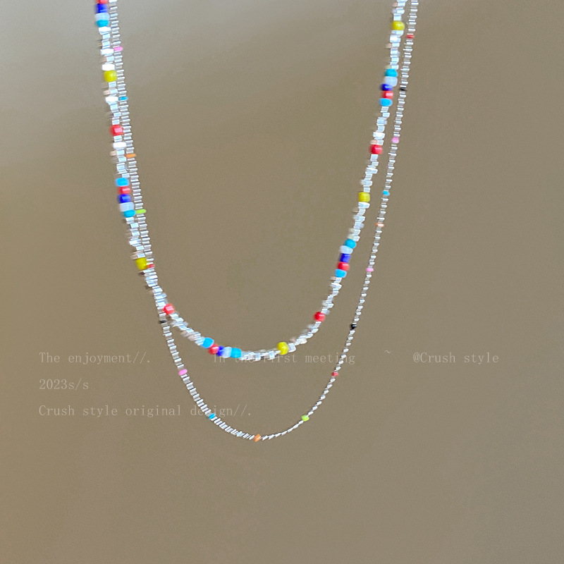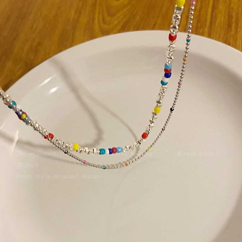 彩色串珠链长约44cm+延长链约5cm彩色碎银链长约38.5cm+延长链约5.5cm