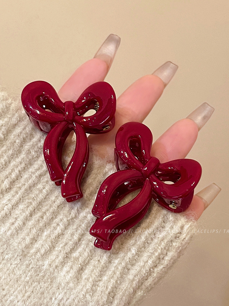 新年红色精致蝴蝶结小抓夹女2024新款后脑勺鲨鱼夹半扎发夹子发饰