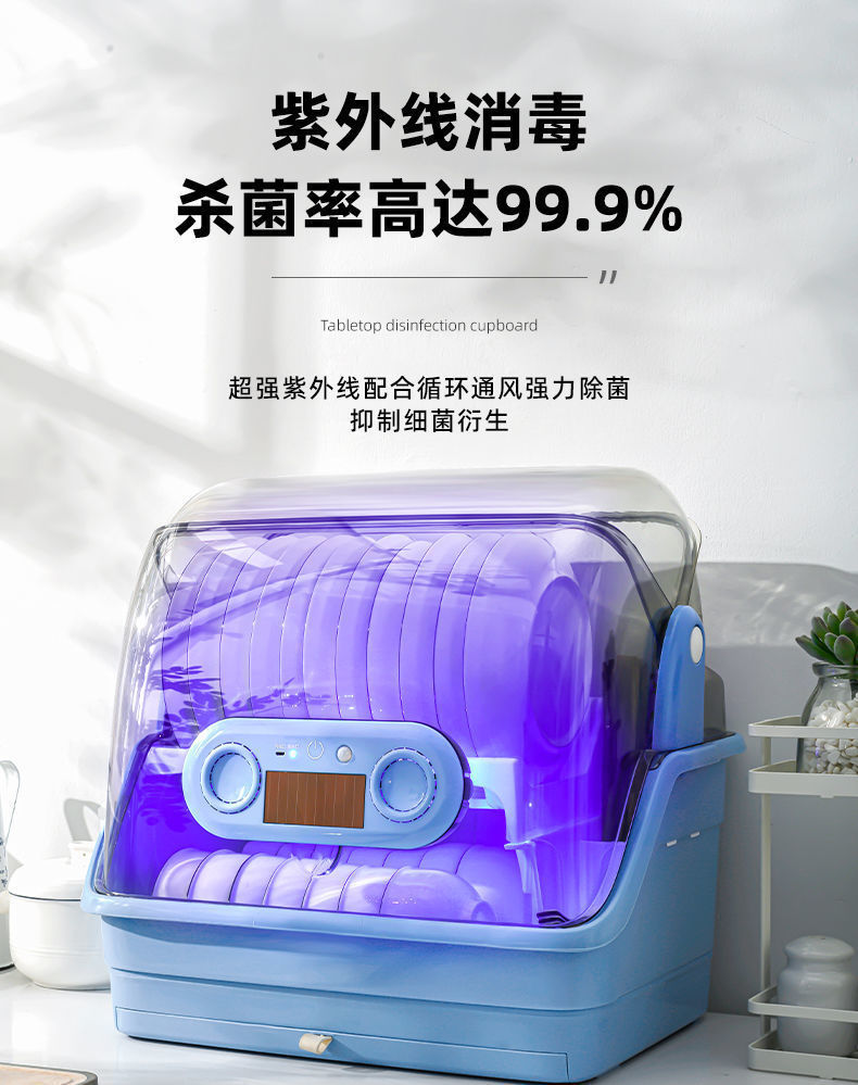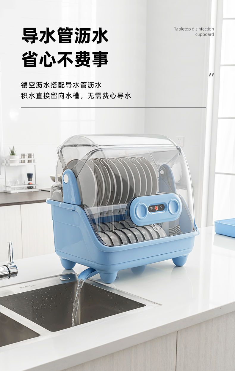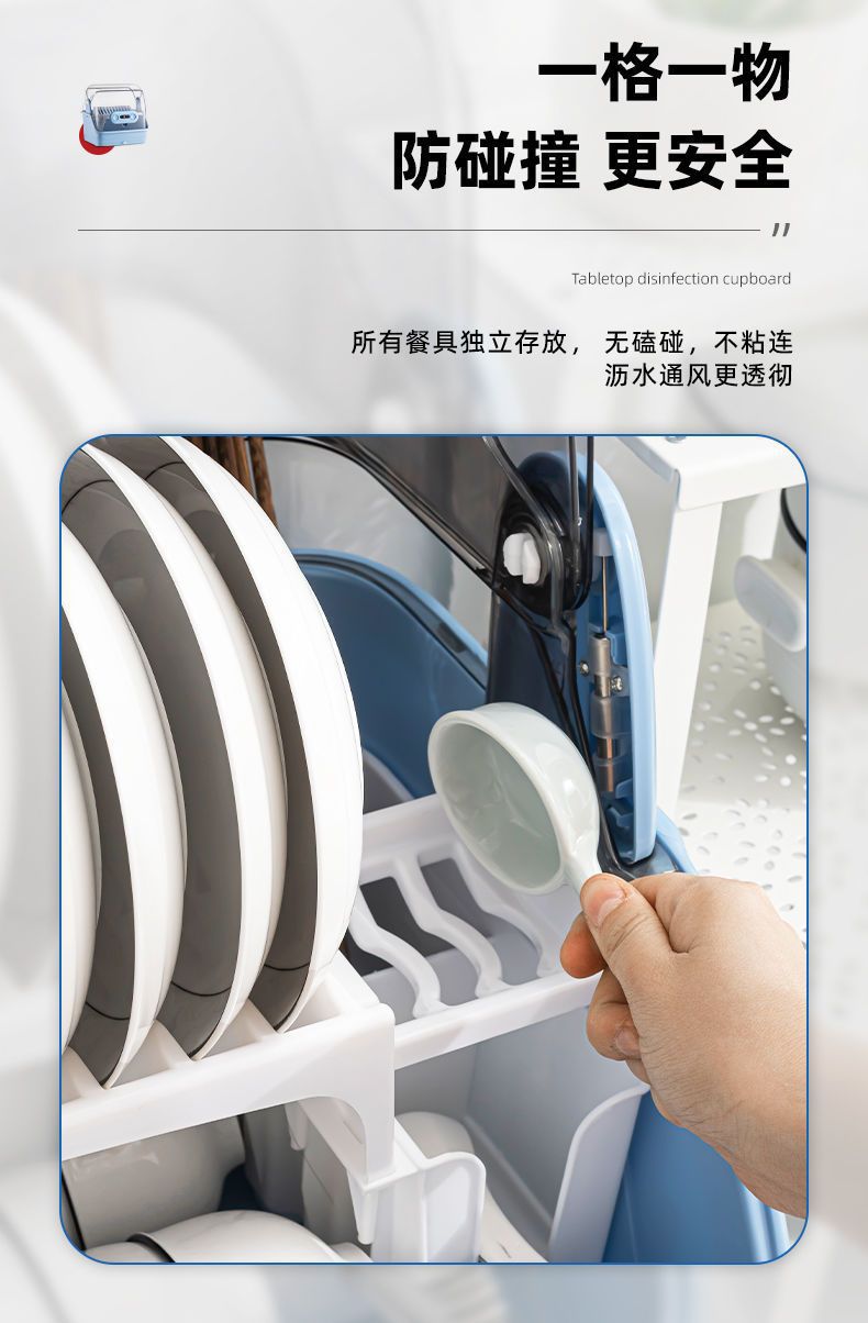 新款厨房台面消毒碗架双层沥水碗筷架紫外线消毒放盘筷子碗柜家用 English | 投诉