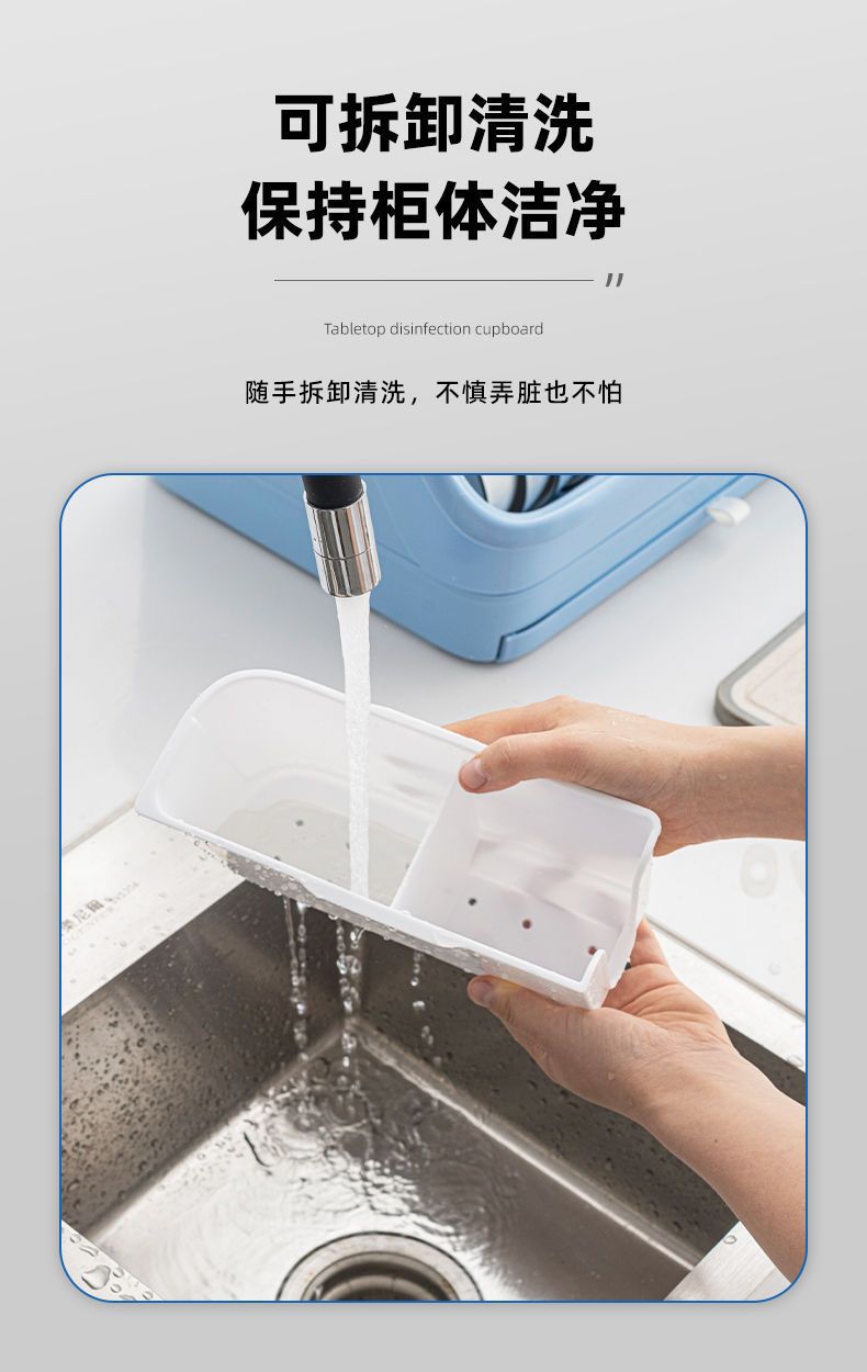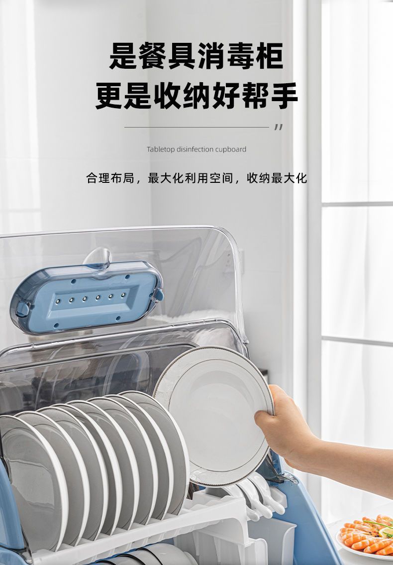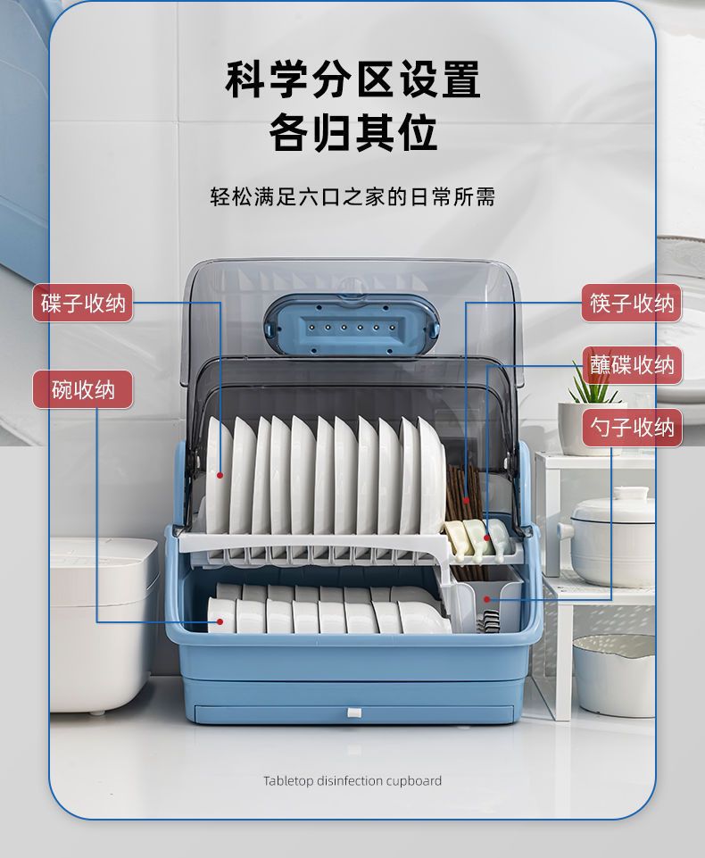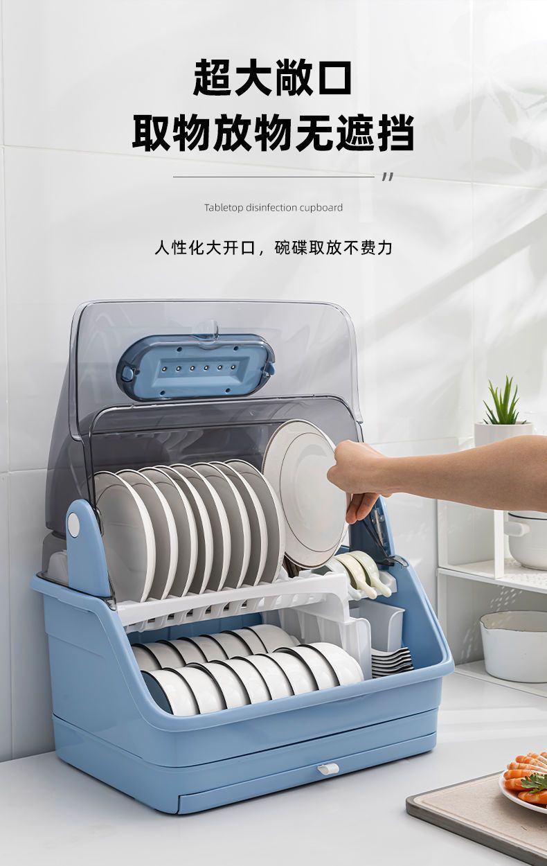 新款厨房台面消毒碗架双层沥水碗筷架紫外线消毒放盘筷子碗柜家用 English | 投诉