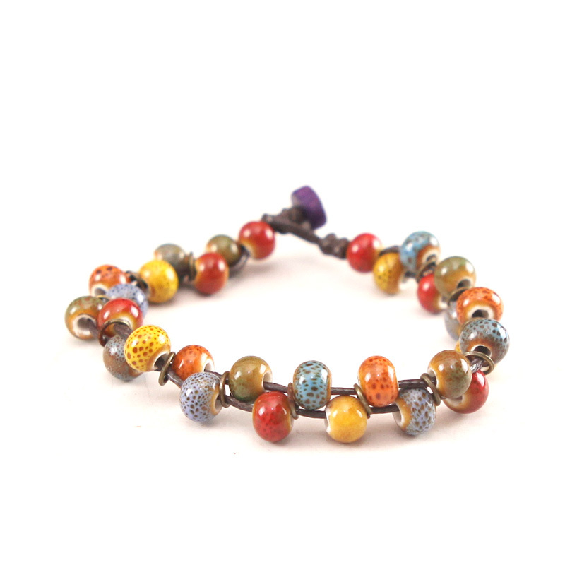 编织景德镇特色手工捏制陶瓷彩色瓷珠森系小清新手链摆摊货源 投诉