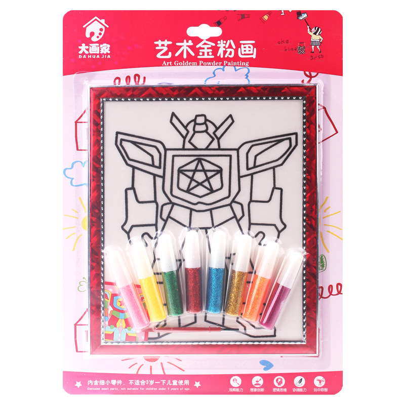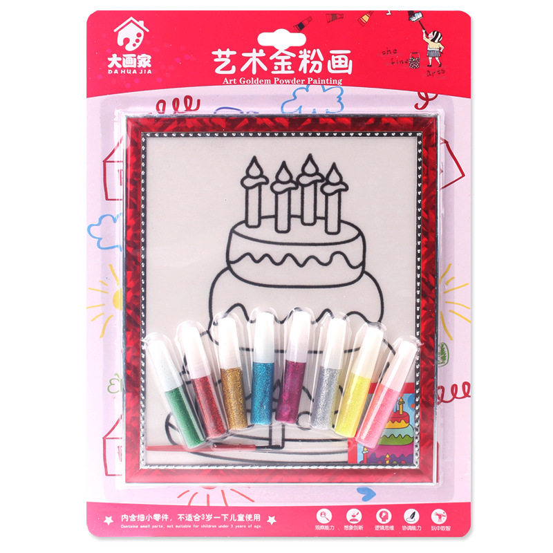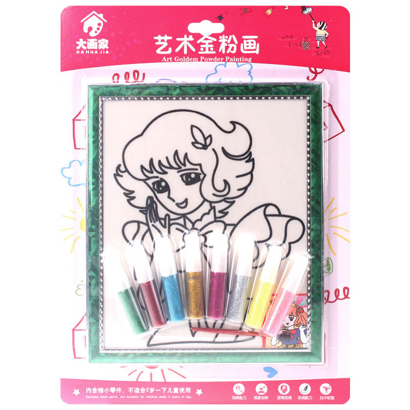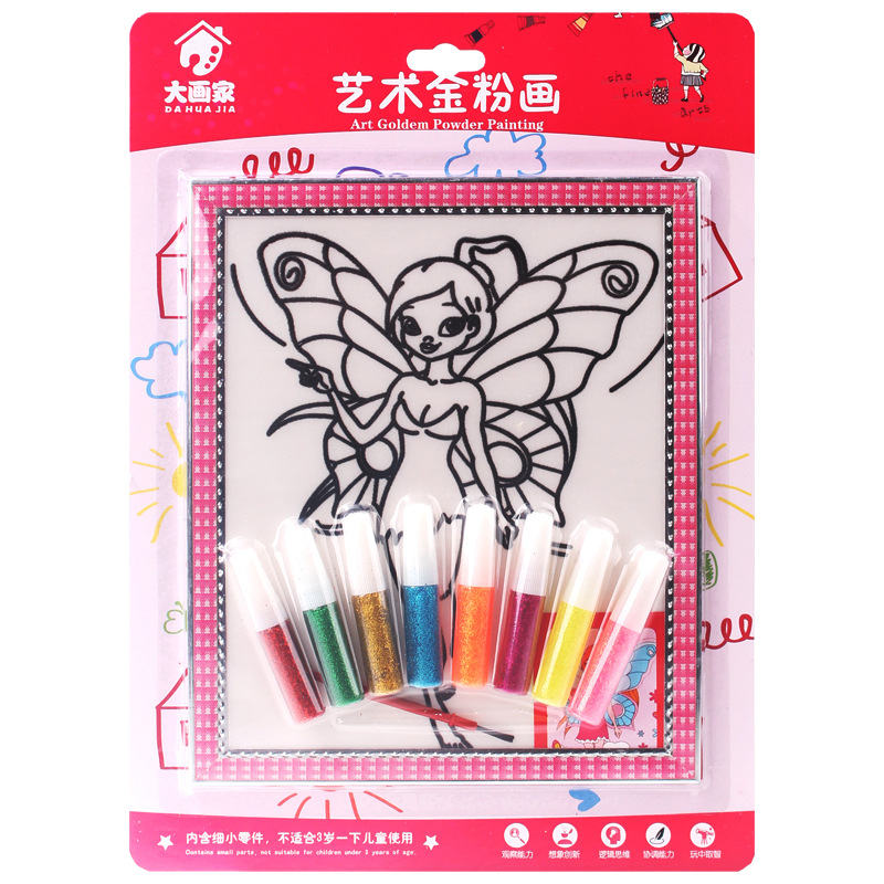 *金粉画是一种将闪光片胶水填涂于 KT 板上 ,从而形成一副闪闪发光的极具欣赏艺术的 DIY 手工玩具。