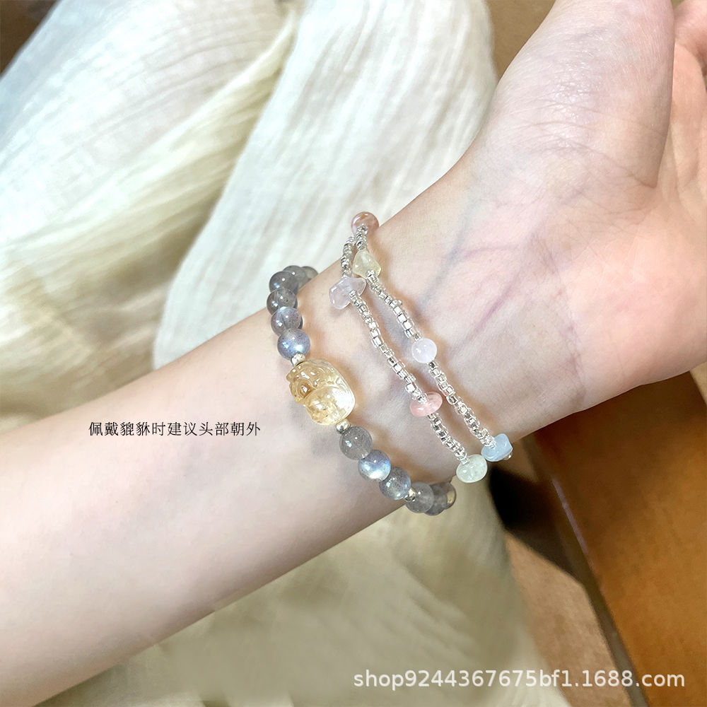 天然月光手链原创之石吸金纳福财源广进灰小众黄水晶貔貅手串发财