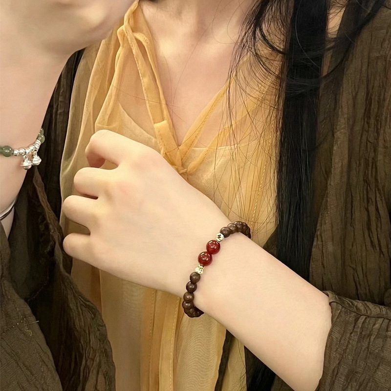 小红书同款天然金丝檀木搭配红玛瑙手串女生木质文玩男士佛珠手链