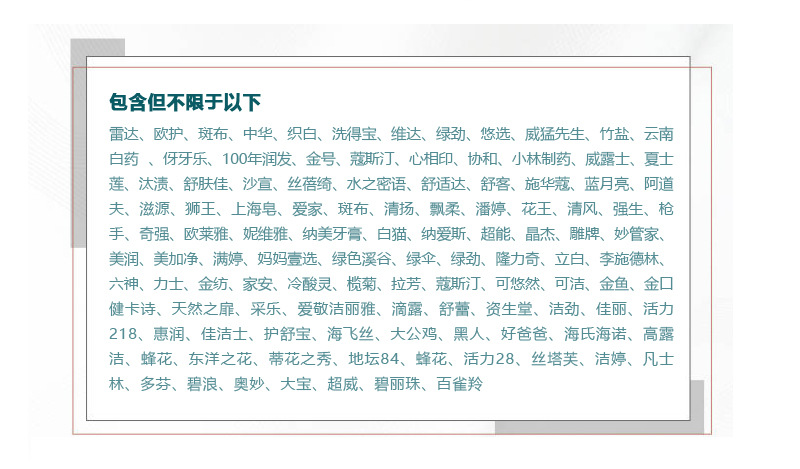 • 经营品牌品牌有:蓝月亮、云南白药、大公鸡、雕牌、超能、碧浪、汰渍、立白、奥妙等。