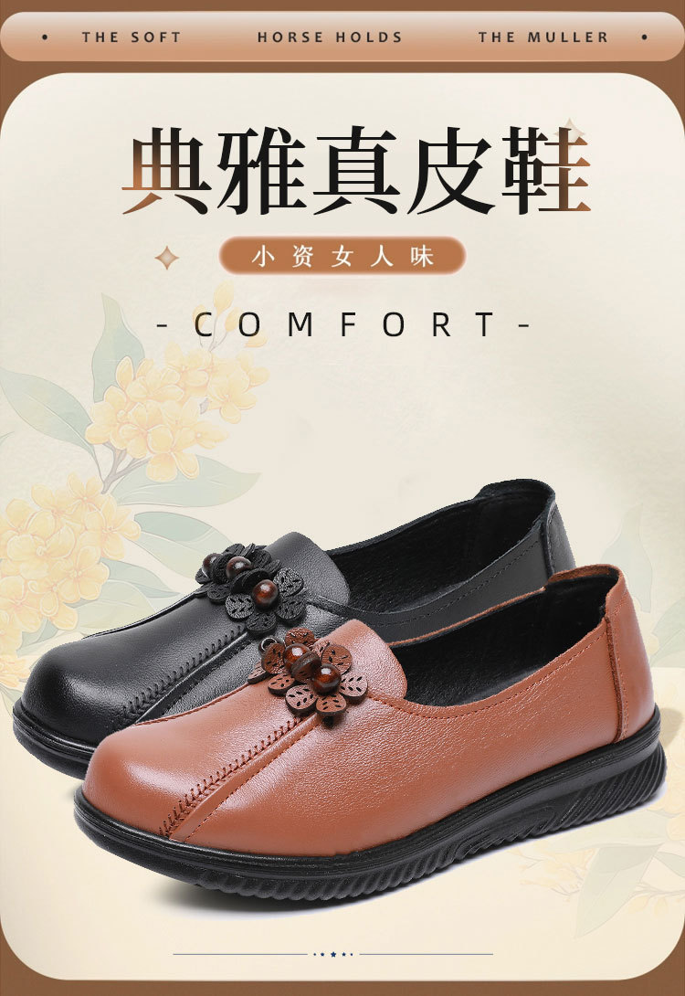 采用聚氨酯软底,妈妈鞋专用鞋底,轻质防滑耐磨不累脚。