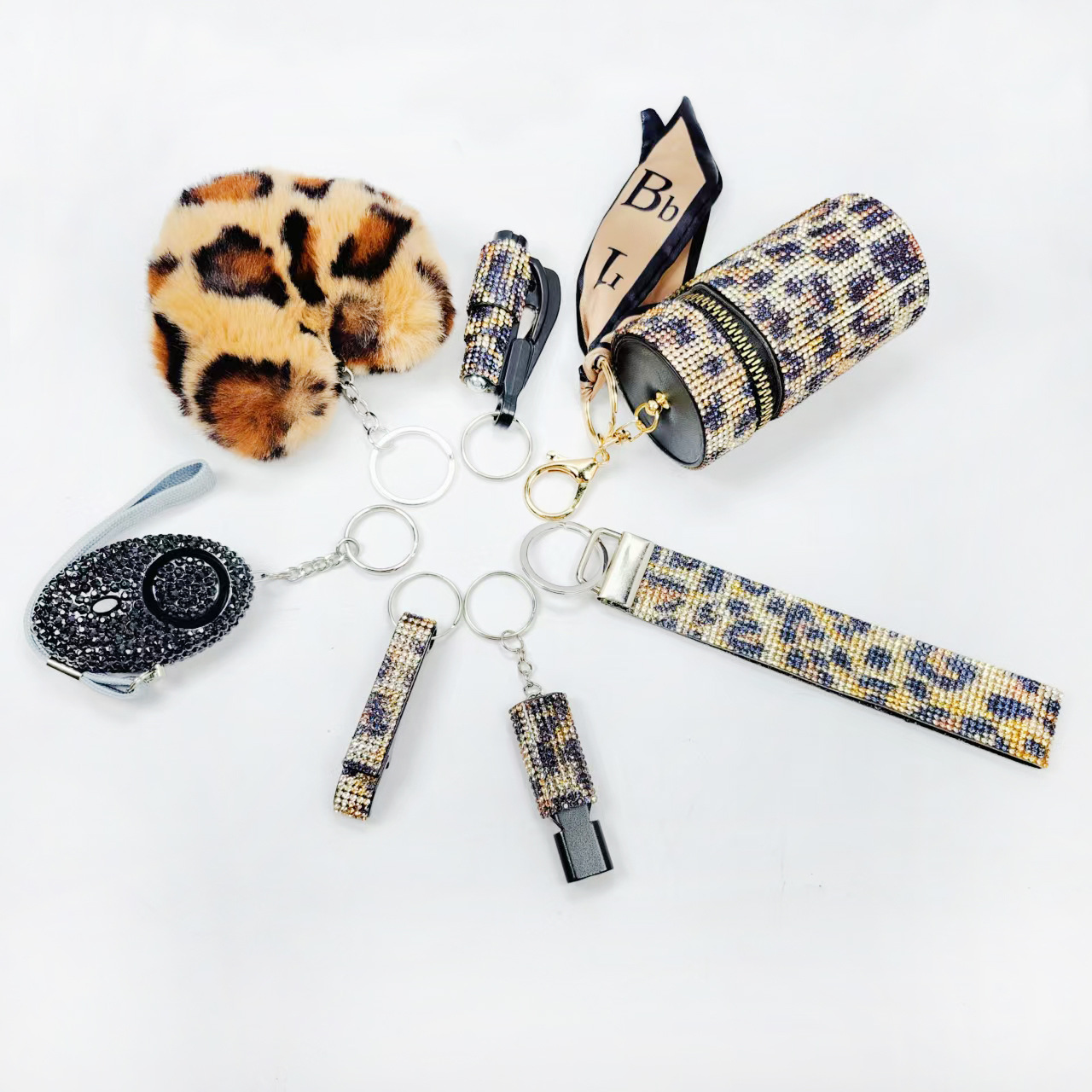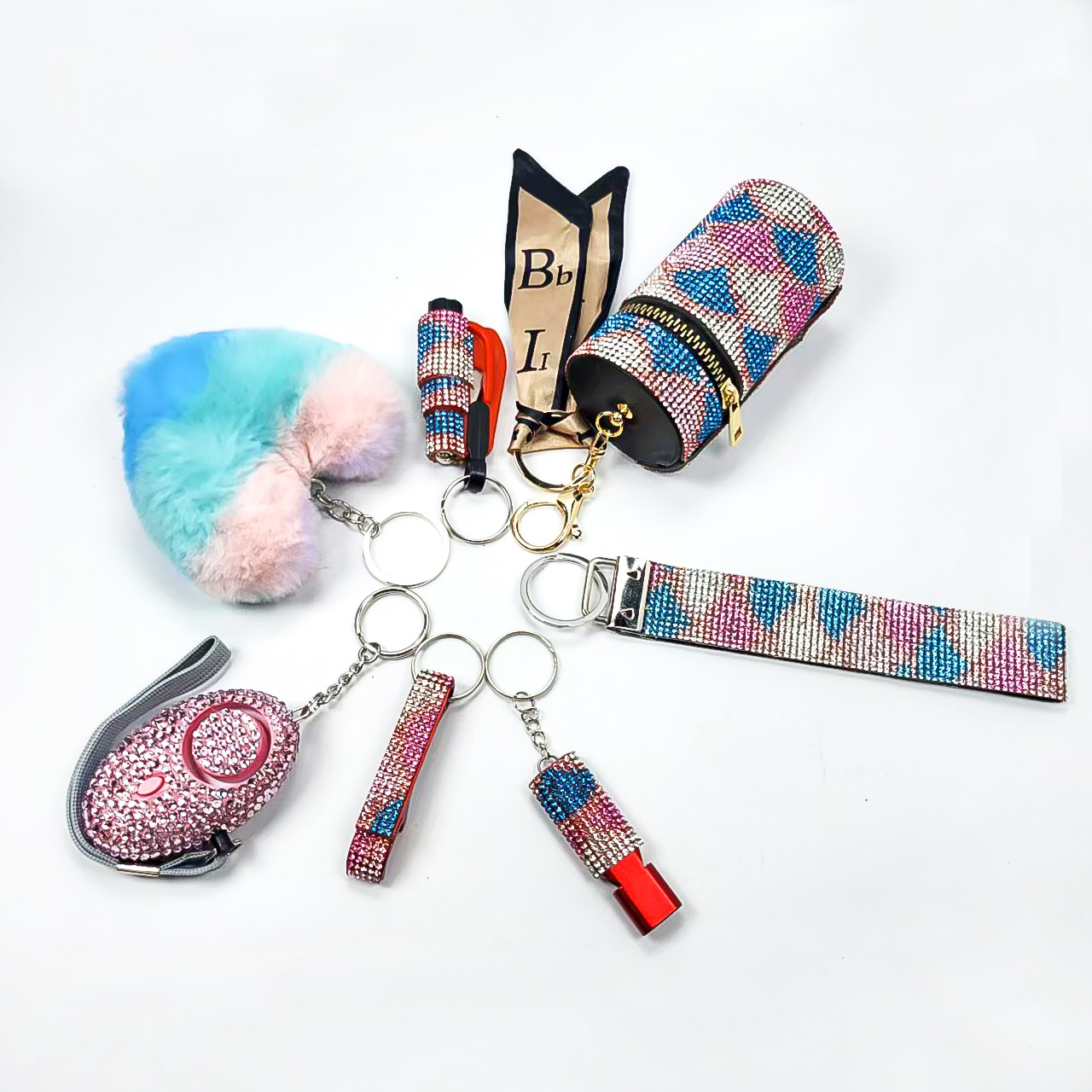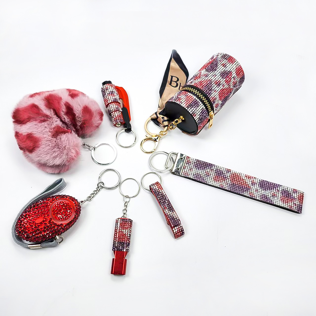 亚马逊跨境镶钻口红包求生口哨开瓶器破窗器爱心毛球手腕带6件套