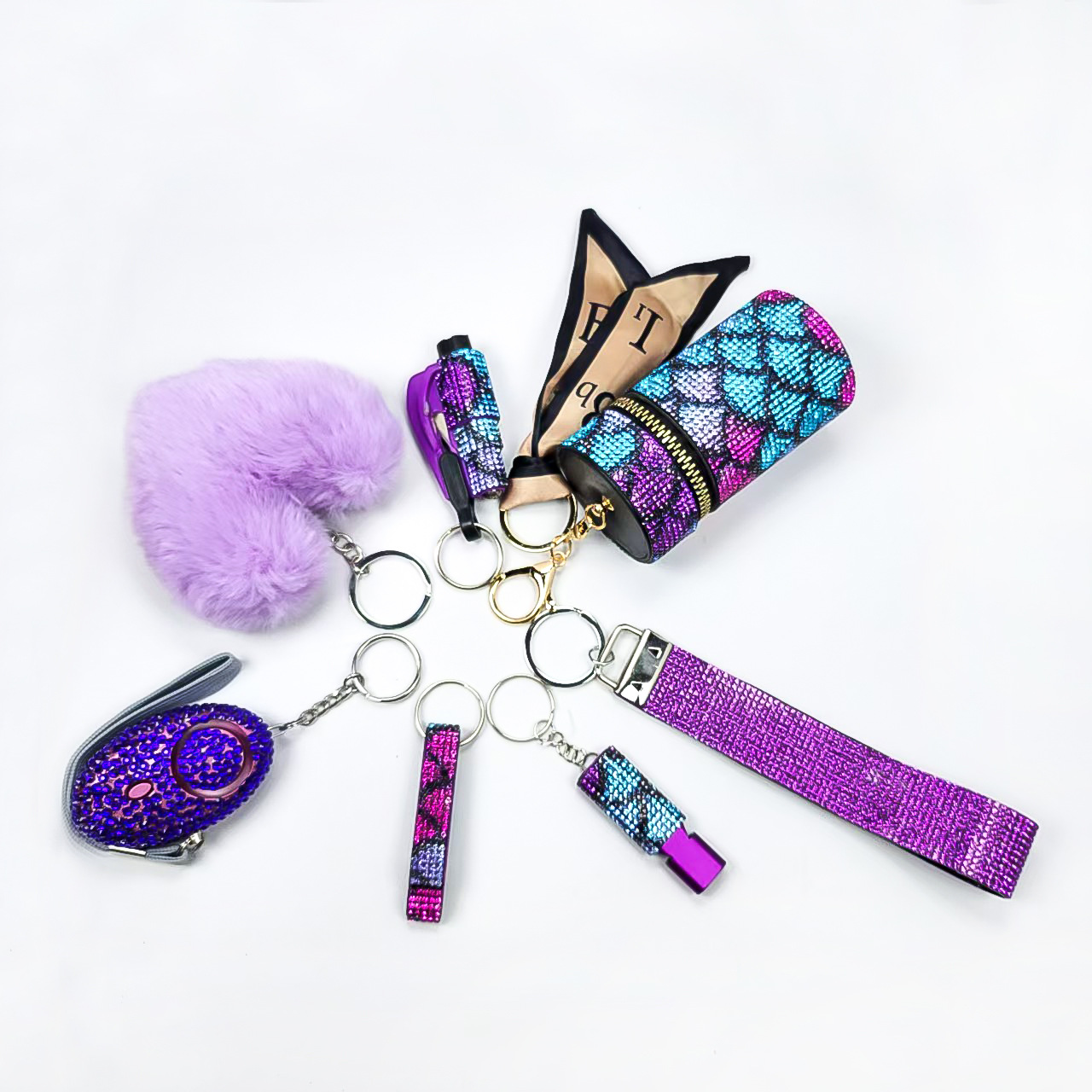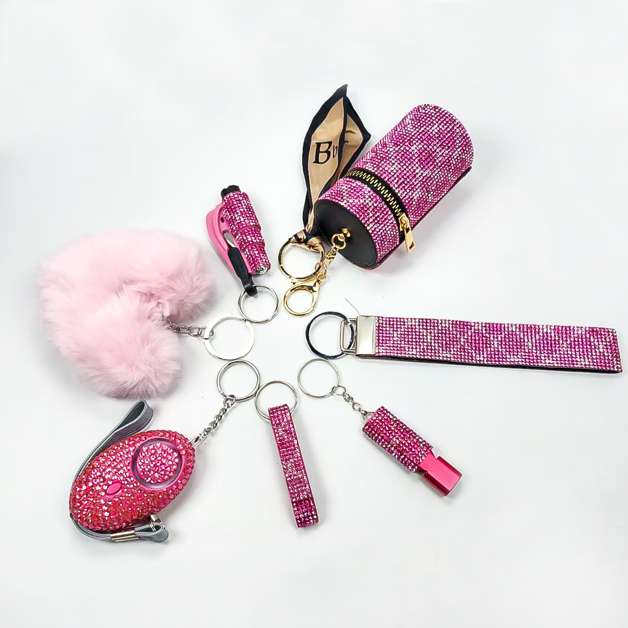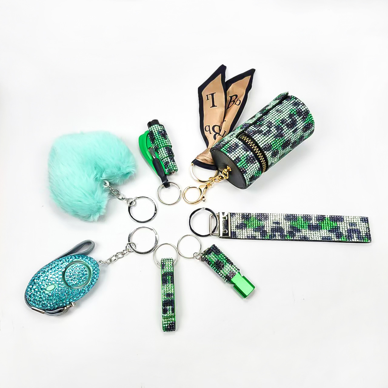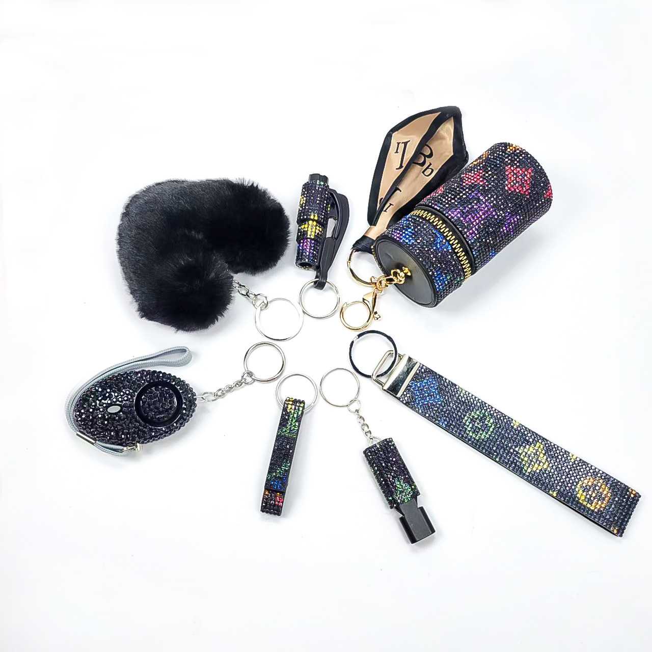 亚马逊跨境镶钻口红包求生口哨开瓶器破窗器爱心毛球手腕带6件套