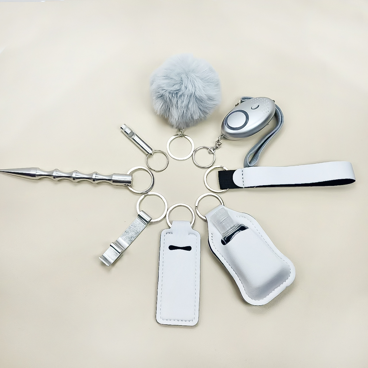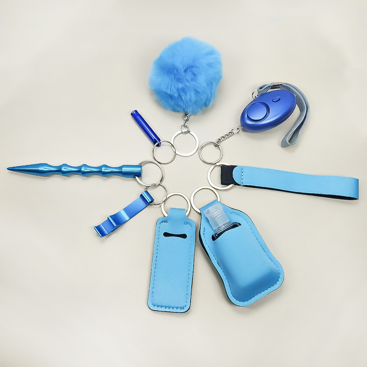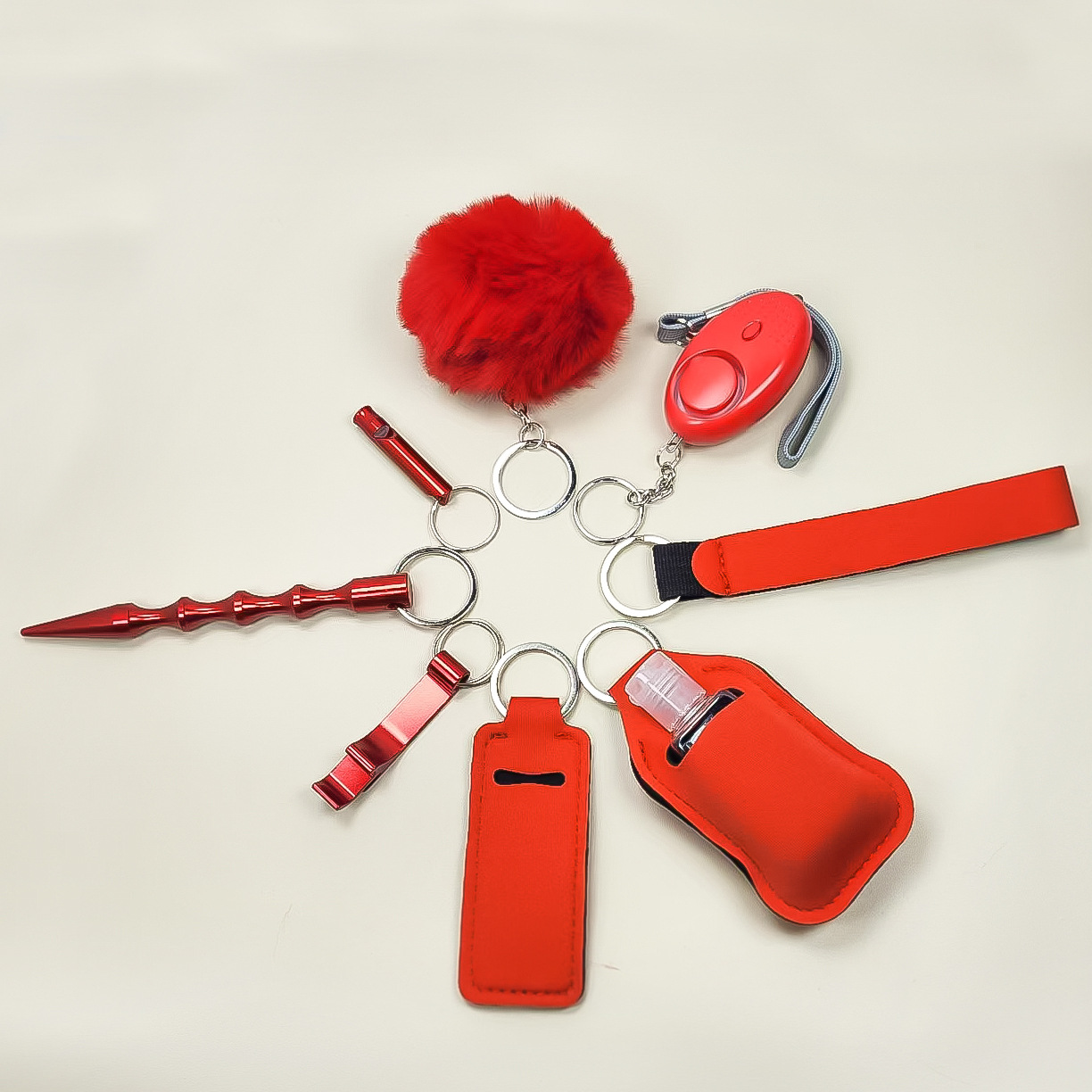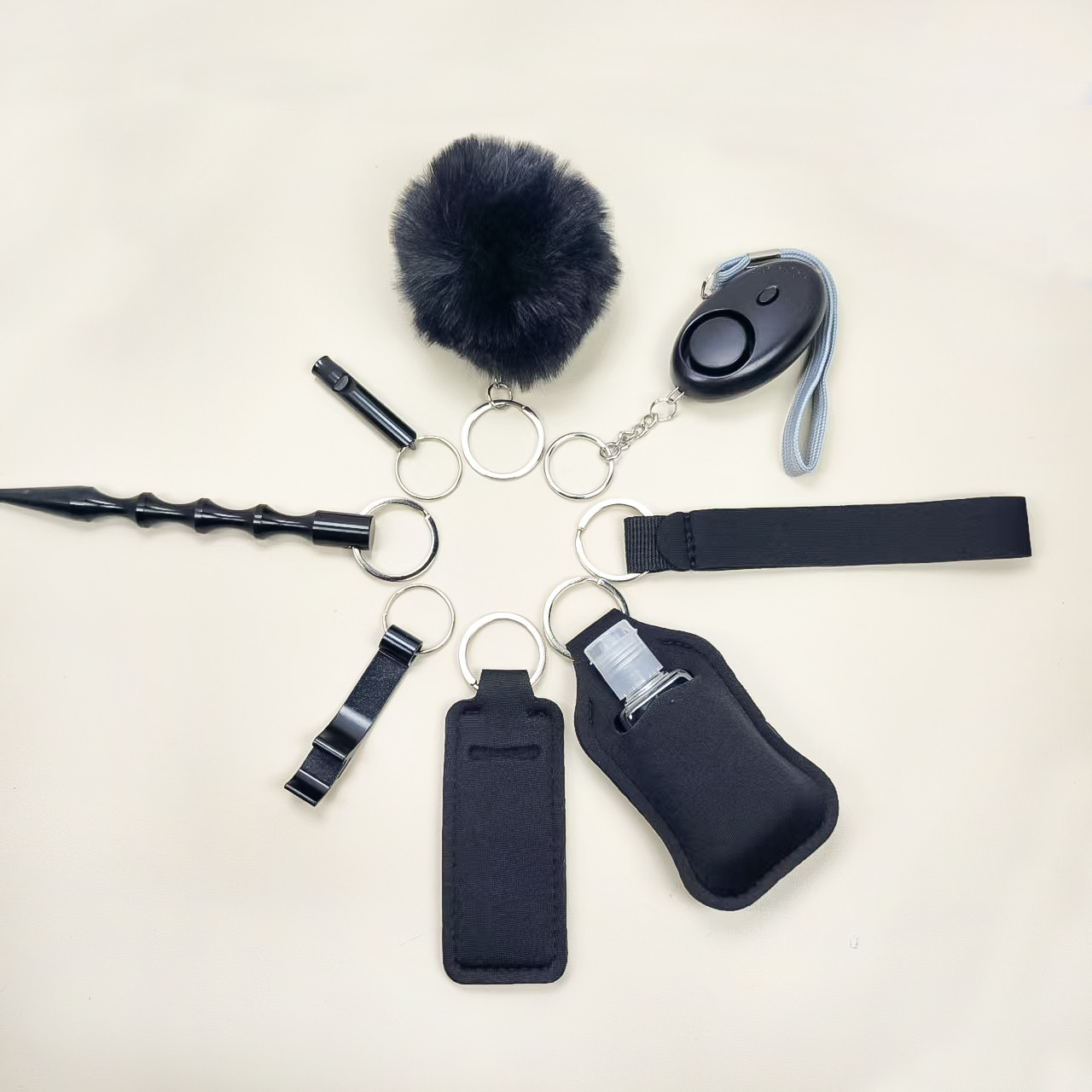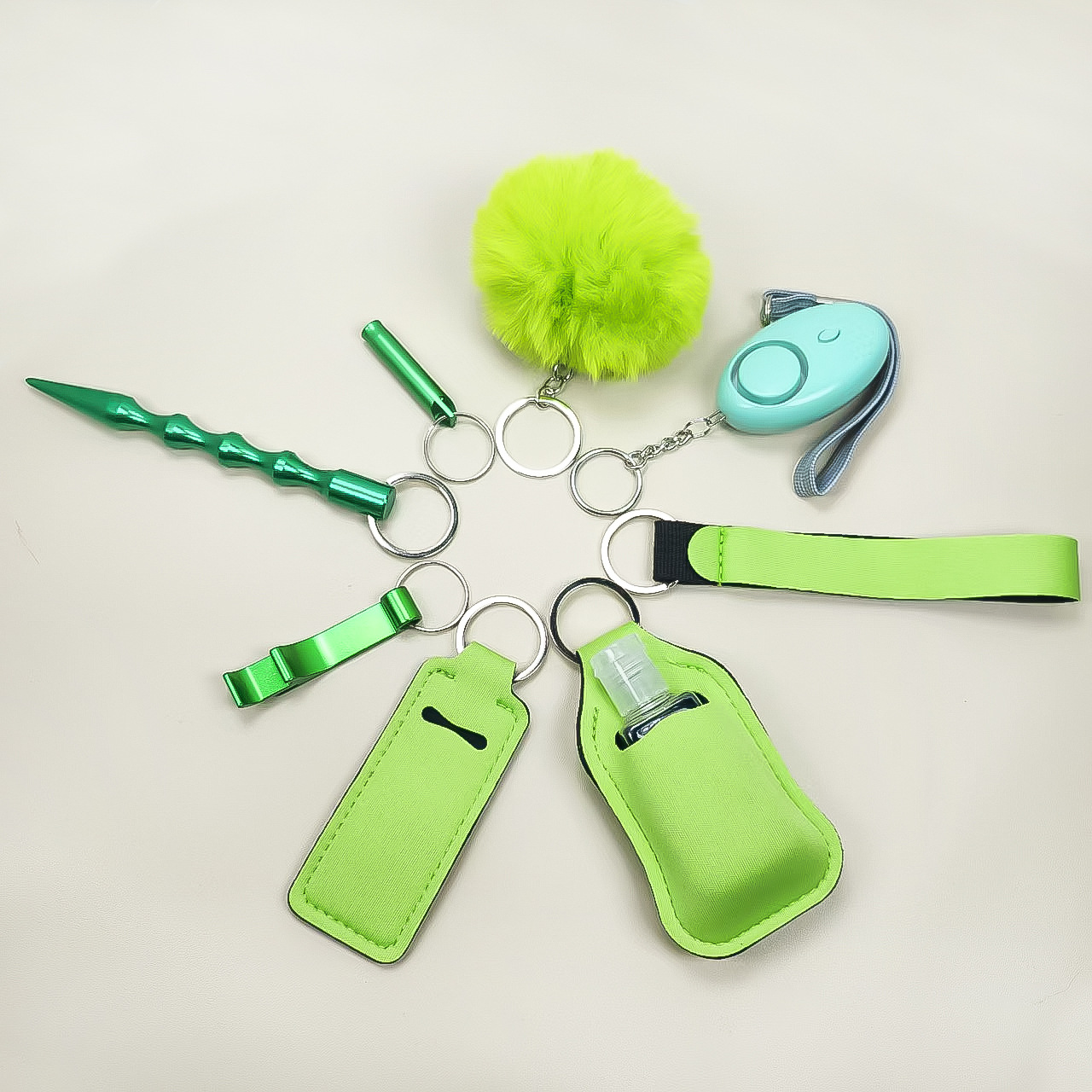 跨境热销洗手液瓶套钥匙扣手腕带口红套唇膏套9件套便捷毛球挂件