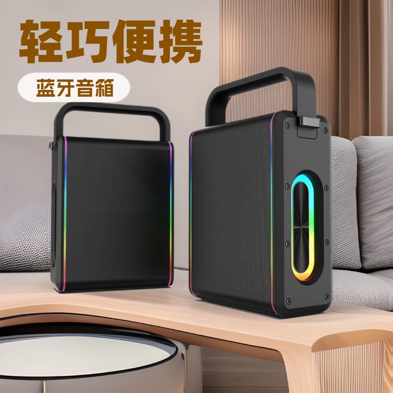 新款K歌手提蓝牙音响 家用户外露营广场彩灯便携手提无线蓝牙音箱