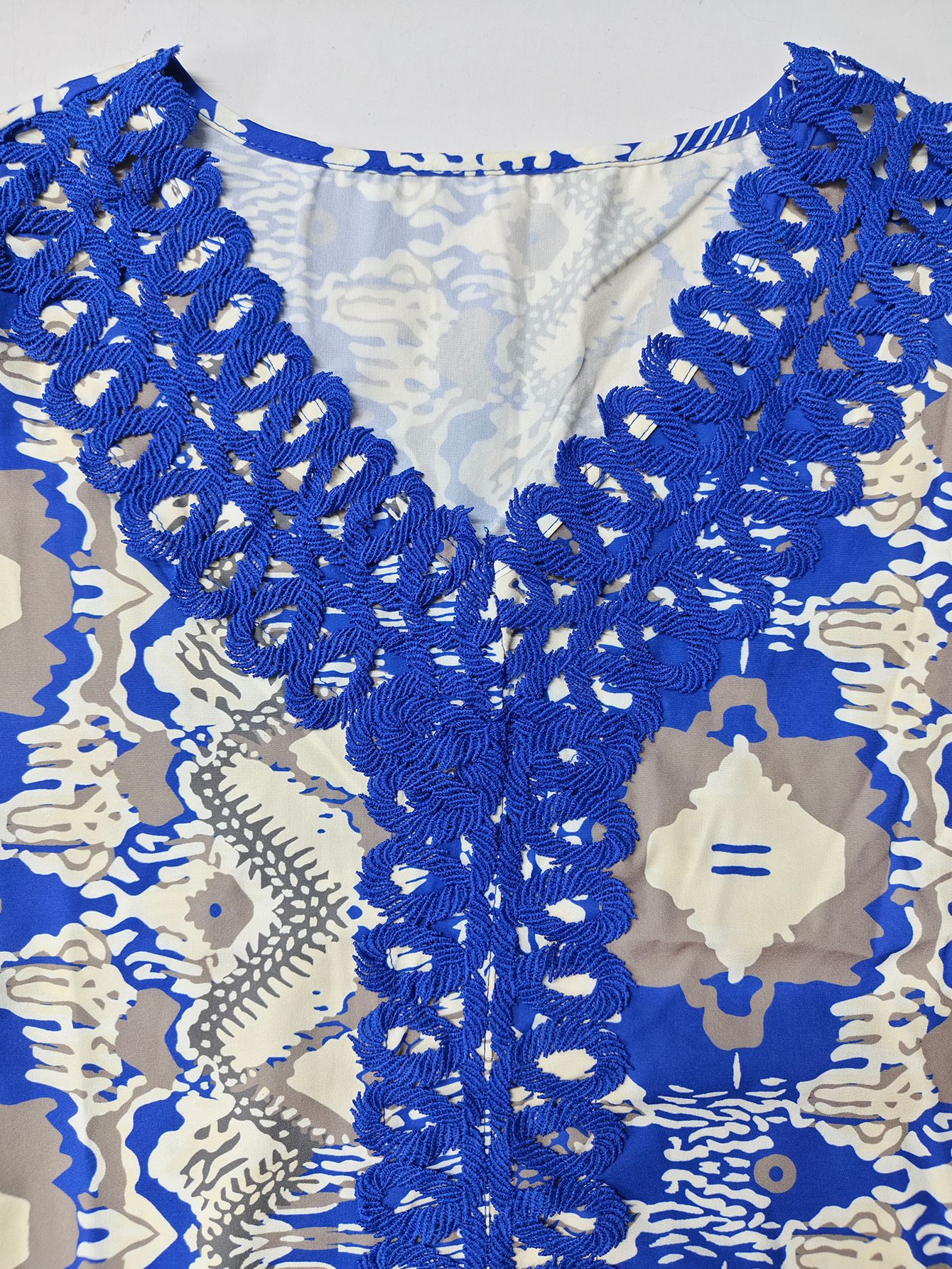面料名称: 四面弹 图案: 几何图案 工艺: 拼接 印花 款式: 套头 组合形式: 单件 裙长: 长裙 裙型: A字裙 领型: V字领 袖型: 常规袖 重量: 0.5 kg/件