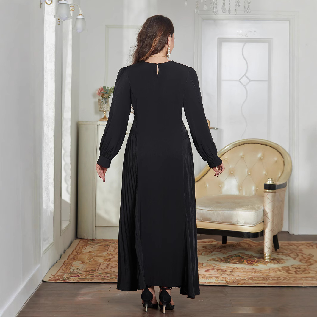 跨境穆斯林女装中东迪拜优雅连衣裙收腰百褶宽松长裙长袍 English | 投诉