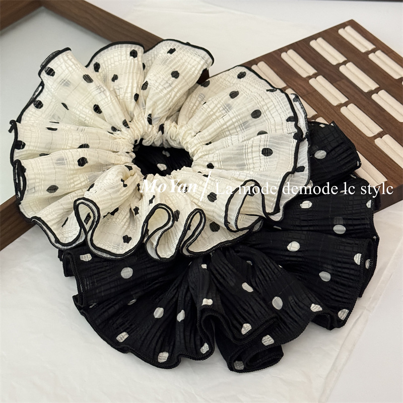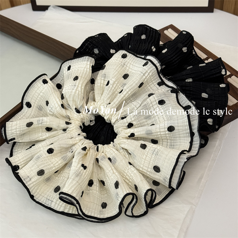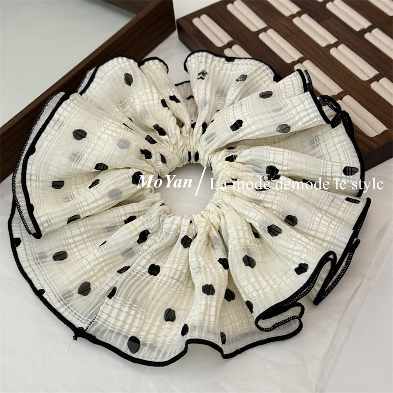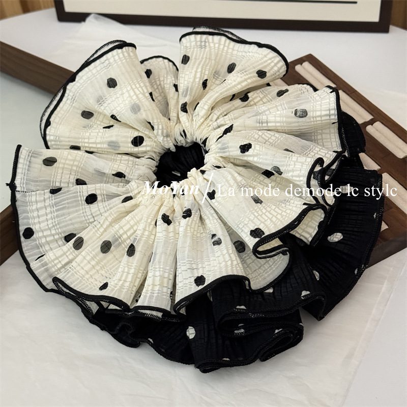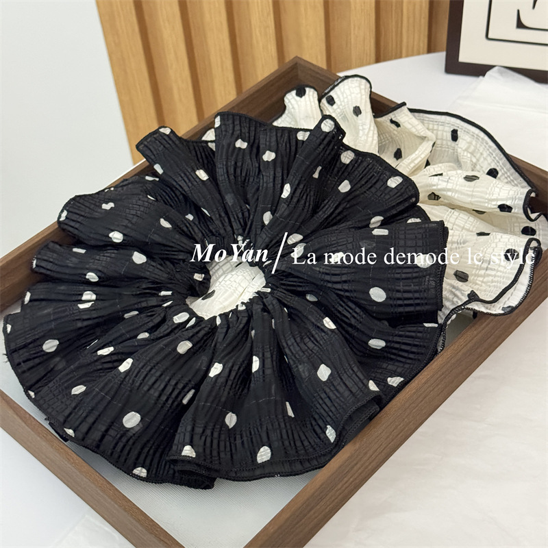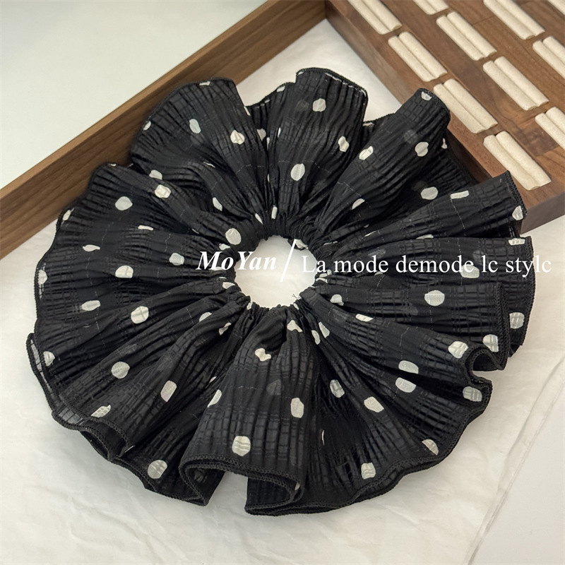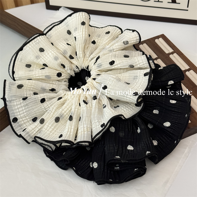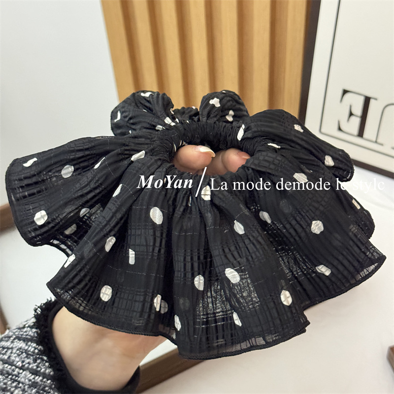韩版双层褶皱大朵波点布艺大肠发圈头花发绳女扎头绳 English | 投诉