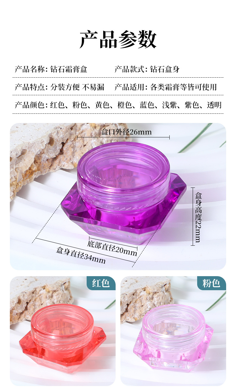 药盒速发3g5g钻石面霜盒 钻石膏霜盒化妆品分装盒瓶空瓶 小样盒瓶 English | 投诉