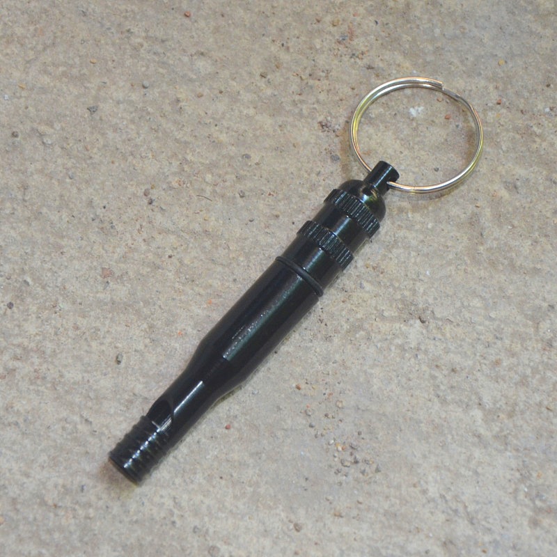 [特点]:中间一截可旋开,内设防水仓,里面还可以储藏一些纸条等小物品,可做为户外求生、训练之用,上面有一