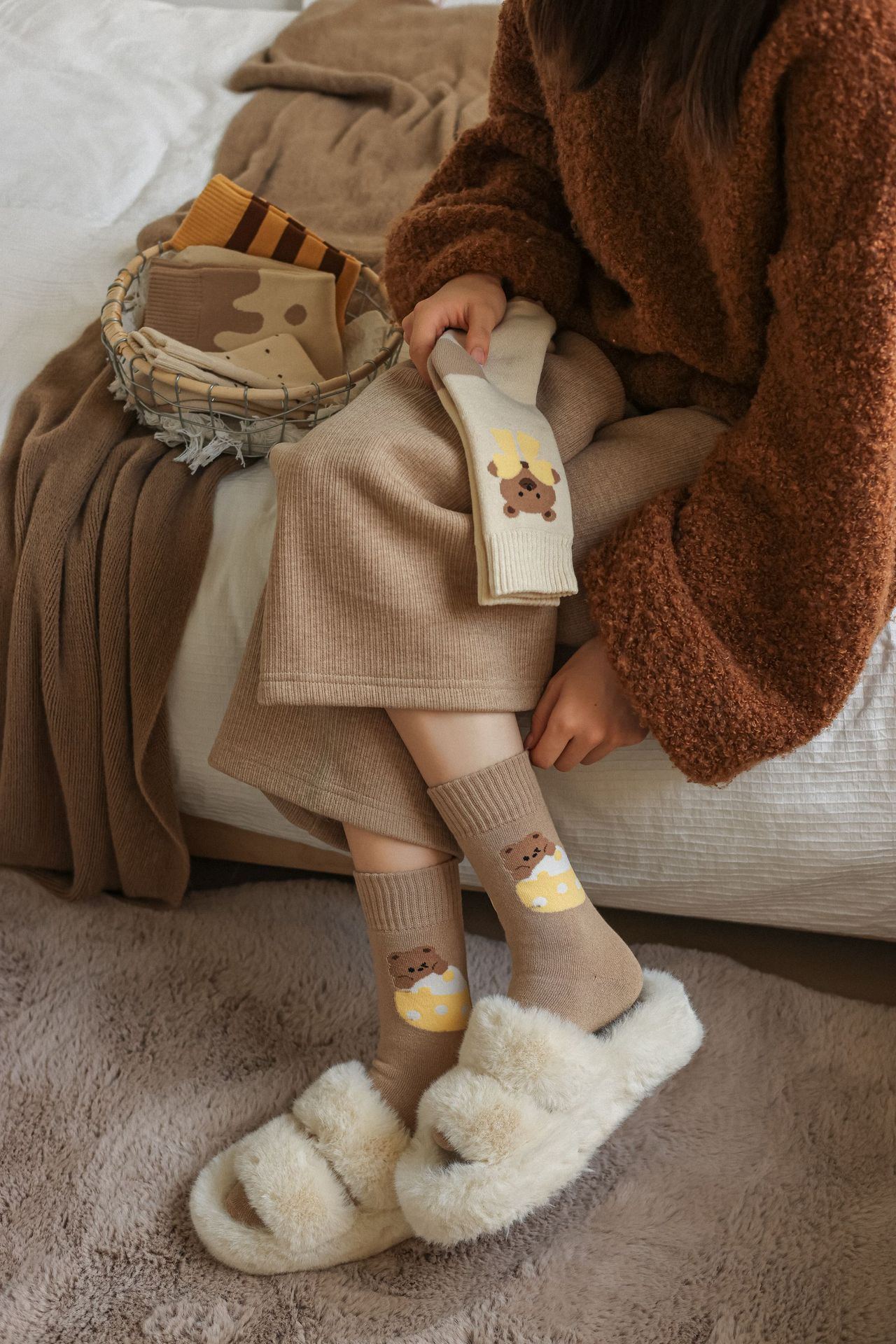 毛圈女袜秋冬 高级袜子女中筒袜ins潮日系复古加厚保暖毛圈袜百搭