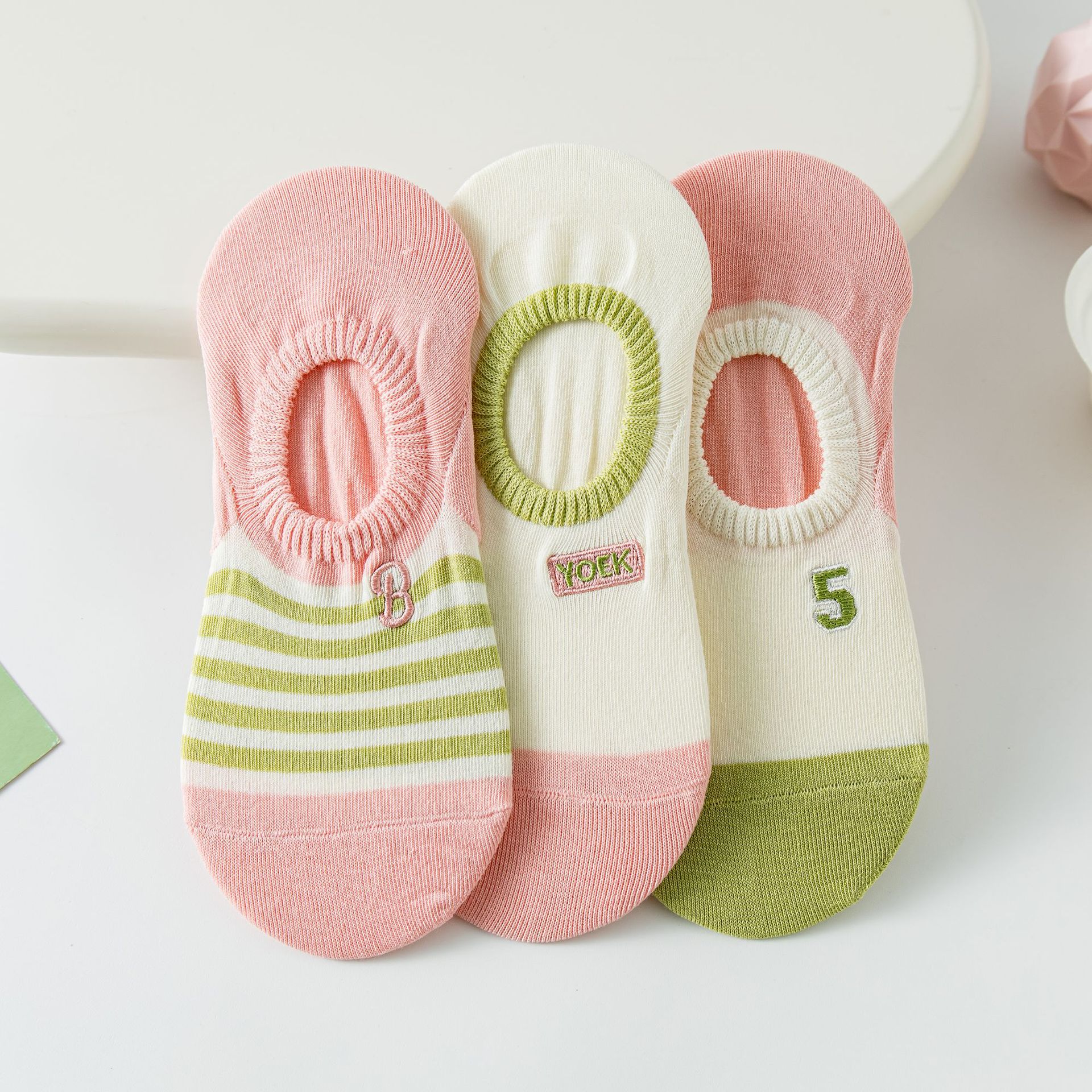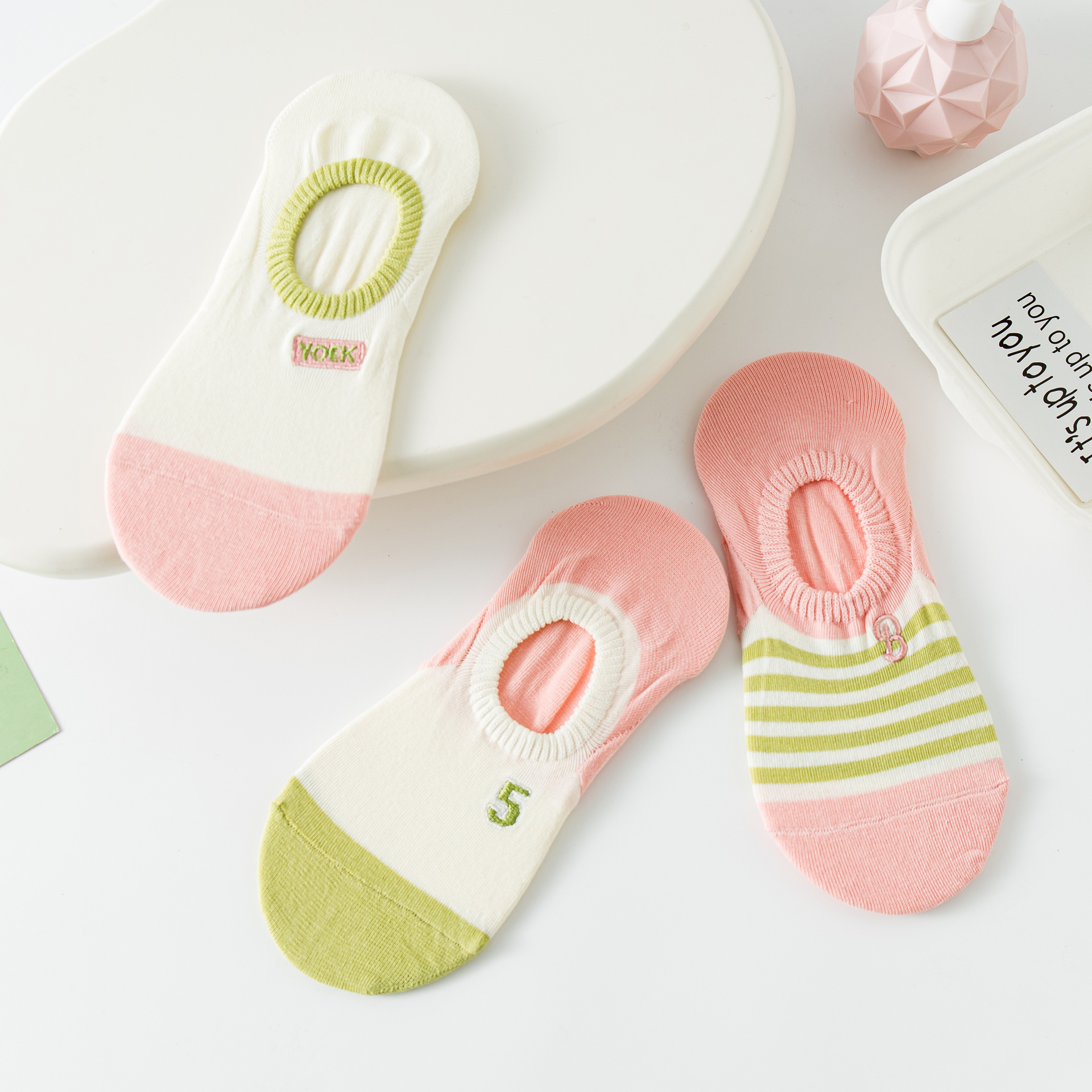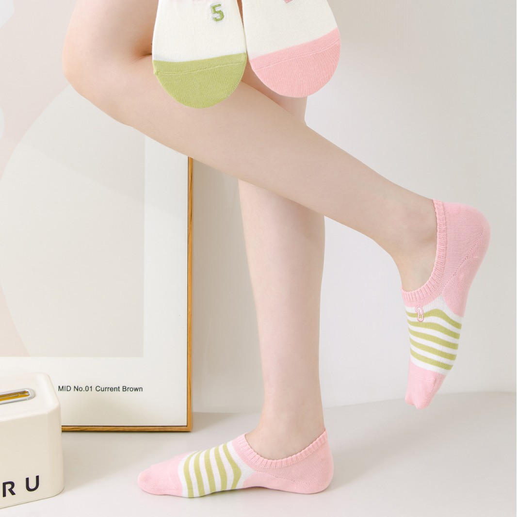 无骨缝制: 否:机器缝头 功能: 隐形,吸汗 图案: 拼色 包装形式: 袋装 适用性别: 女 适用年龄段: 青年(18-40周岁) 主面料成分: 棉 筒高: 短筒 针数: 200N 上市时间: 2025年春季