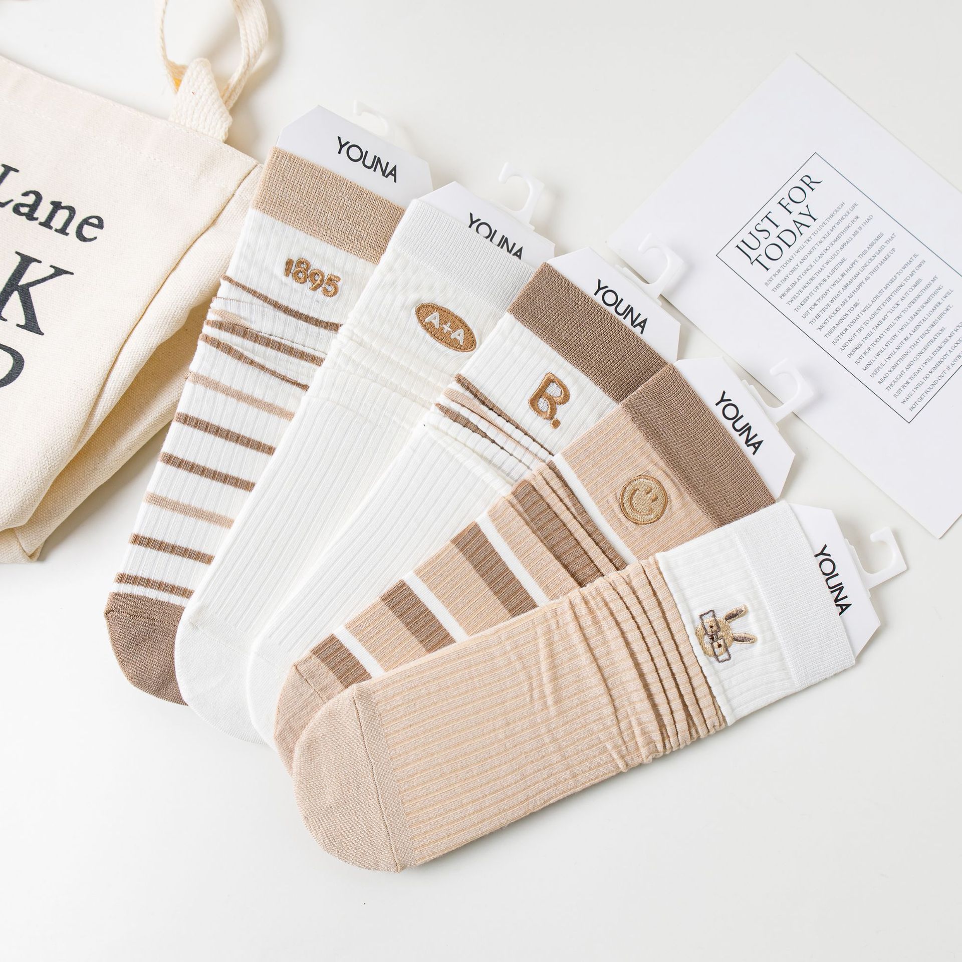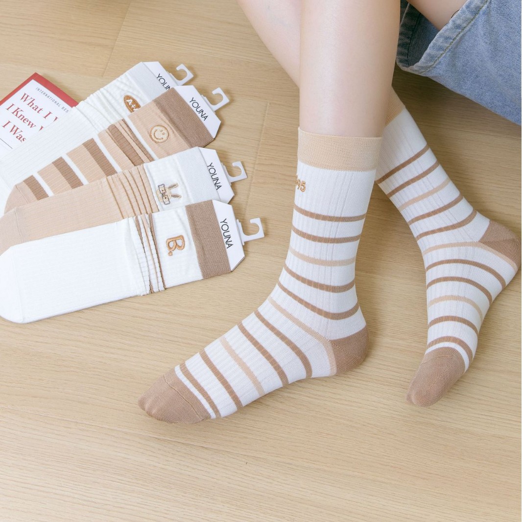 女春秋款五色刺绣长筒堆堆袜简约时尚百搭