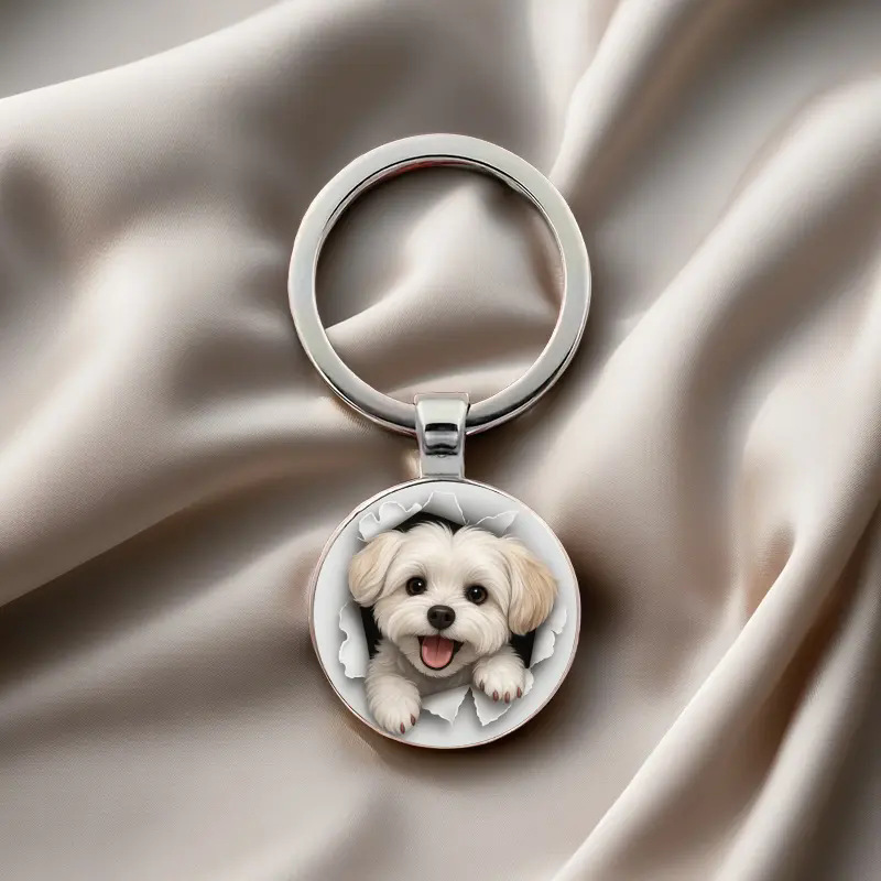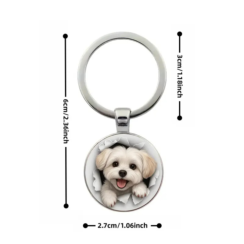 1个可爱马尔济斯犬钥匙扣精美合金与圆形玻璃饰品,高质工艺宠物