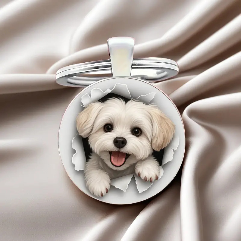 1个可爱马尔济斯犬钥匙扣精美合金与圆形玻璃饰品,高质工艺宠物 English | 投诉
