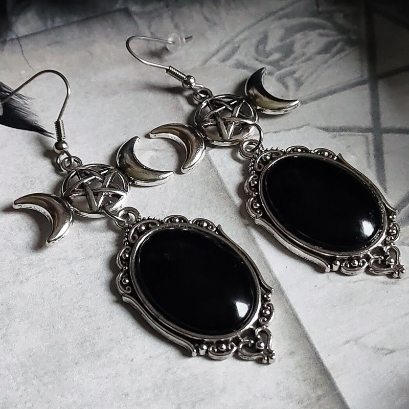诗勇 亚马逊 跨境 时尚哥特黑色水晶浮雕和三重五角星吊 English | 投诉