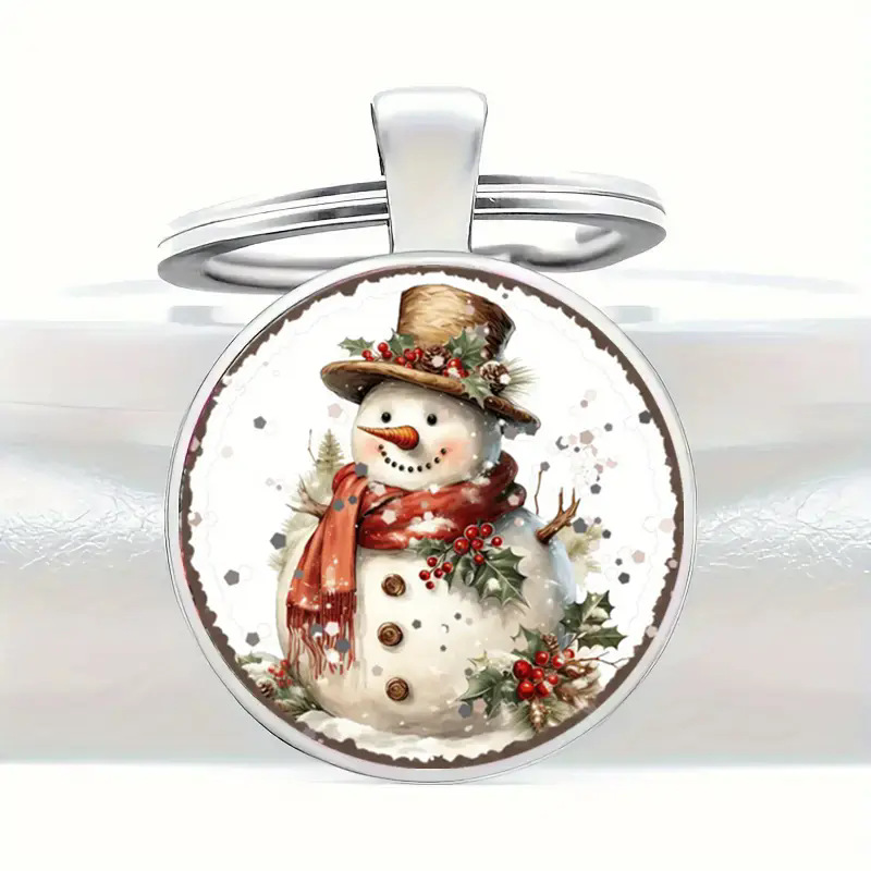 乡村风雪人吊坠冬季假日可爱配饰合金白色,男士时尚钥匙圈