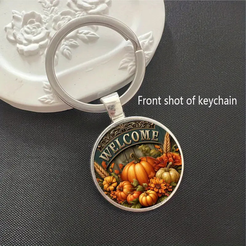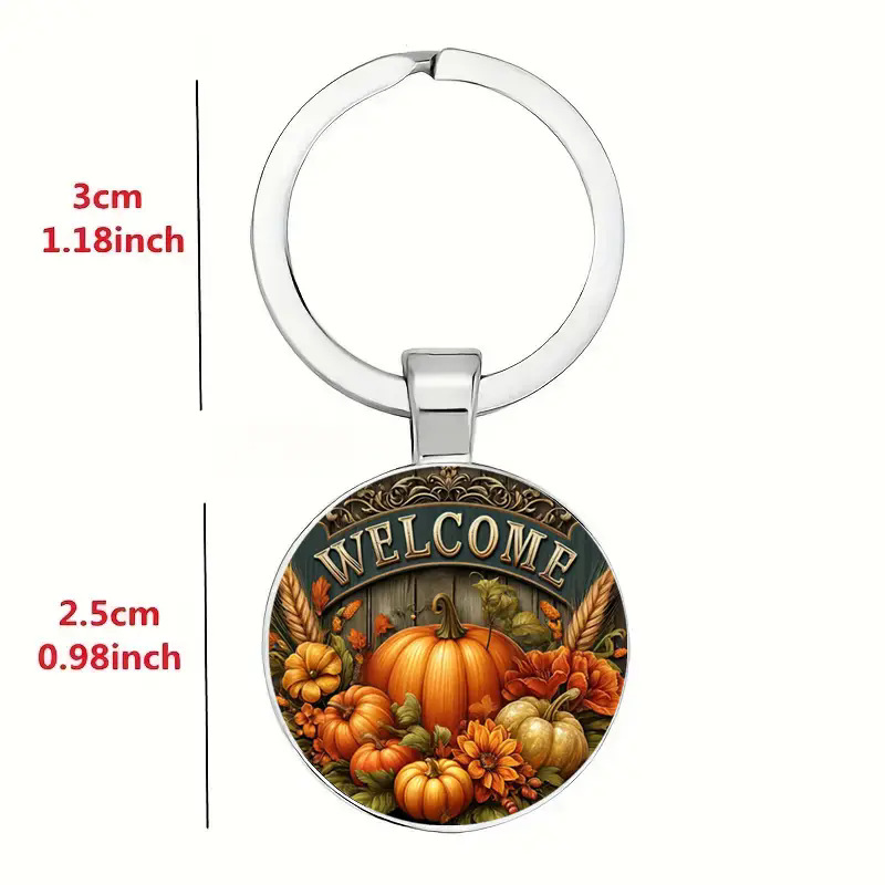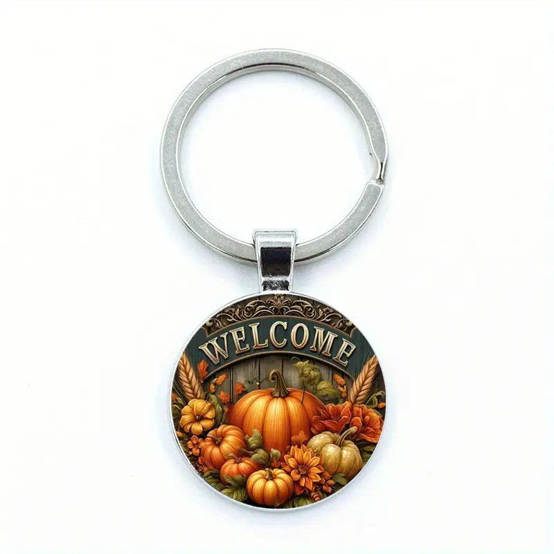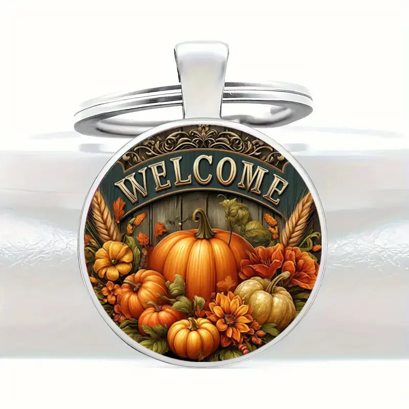 南瓜图案玻璃吊坠钥匙扣,带迎宾语,精致钥匙链 English | 投诉