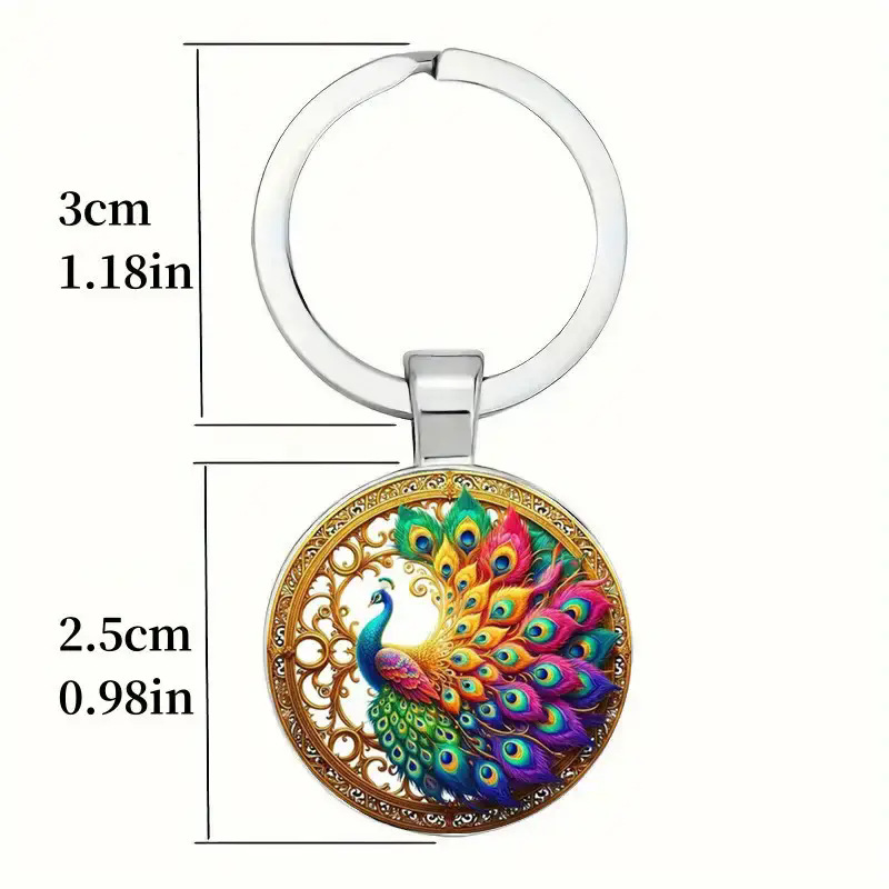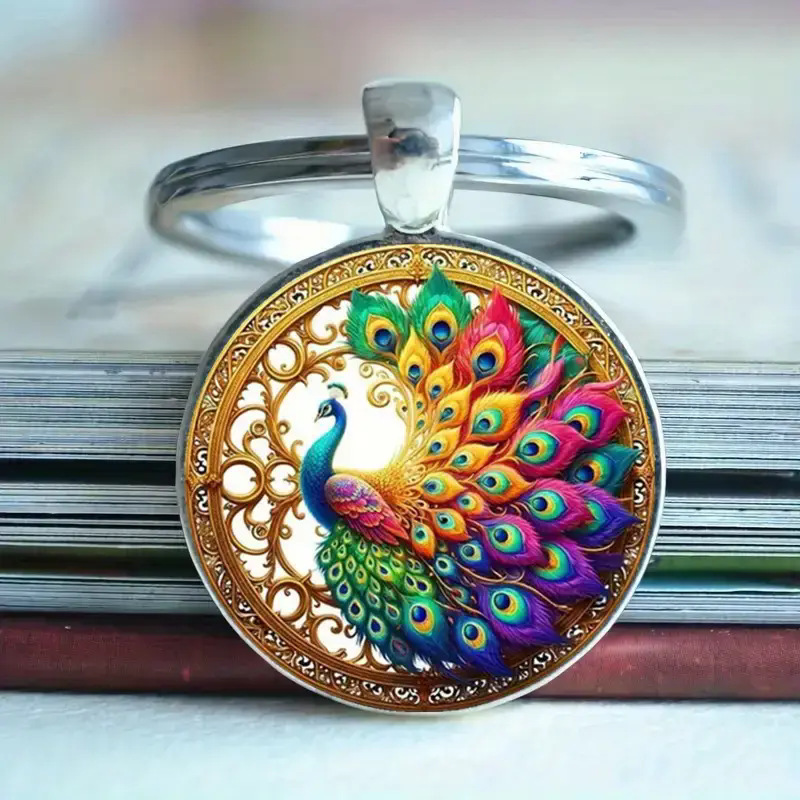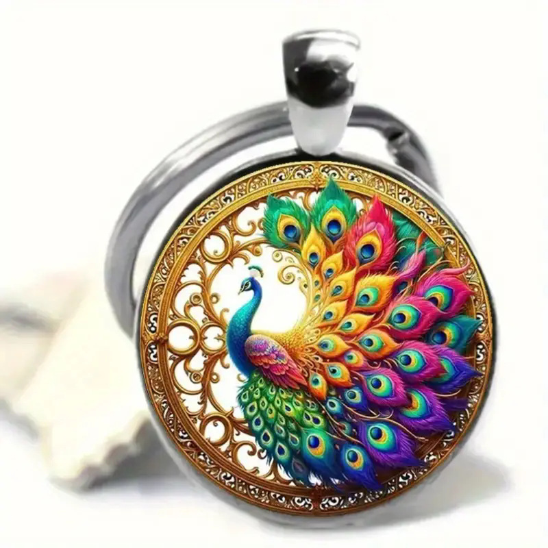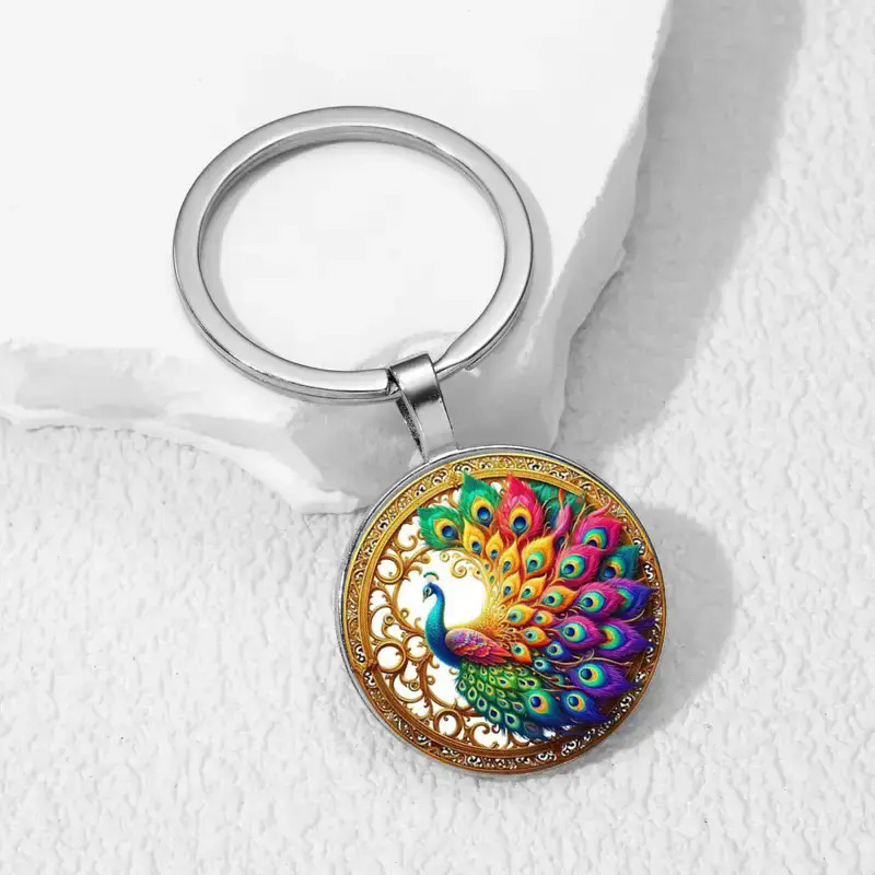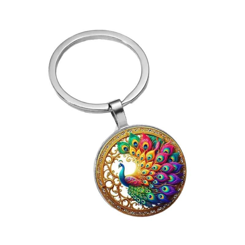 跨境热卖复古五彩孔雀时光宝石钥匙链包包佩饰批发