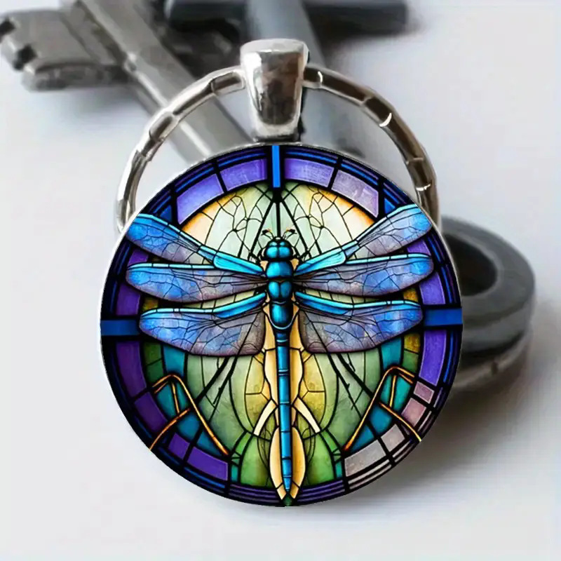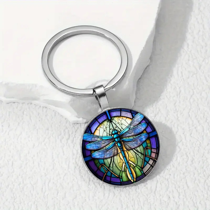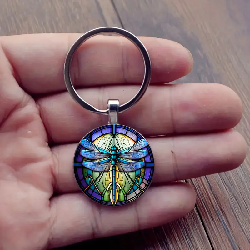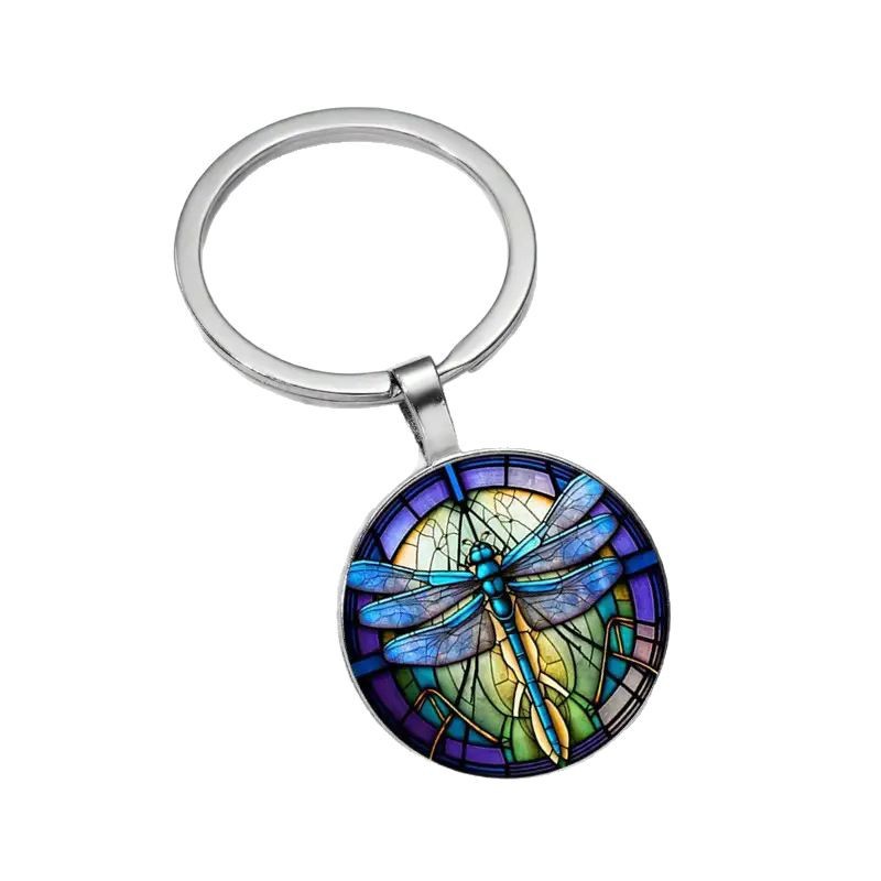 鲜花蜻蜓主题玻璃钥匙扣装饰皮包及钥匙扣配件装饰挂件 English | 投诉