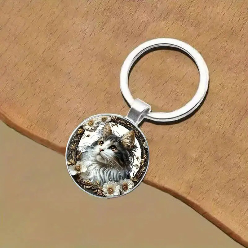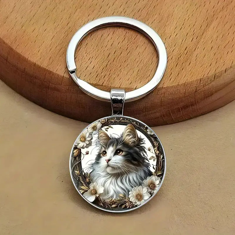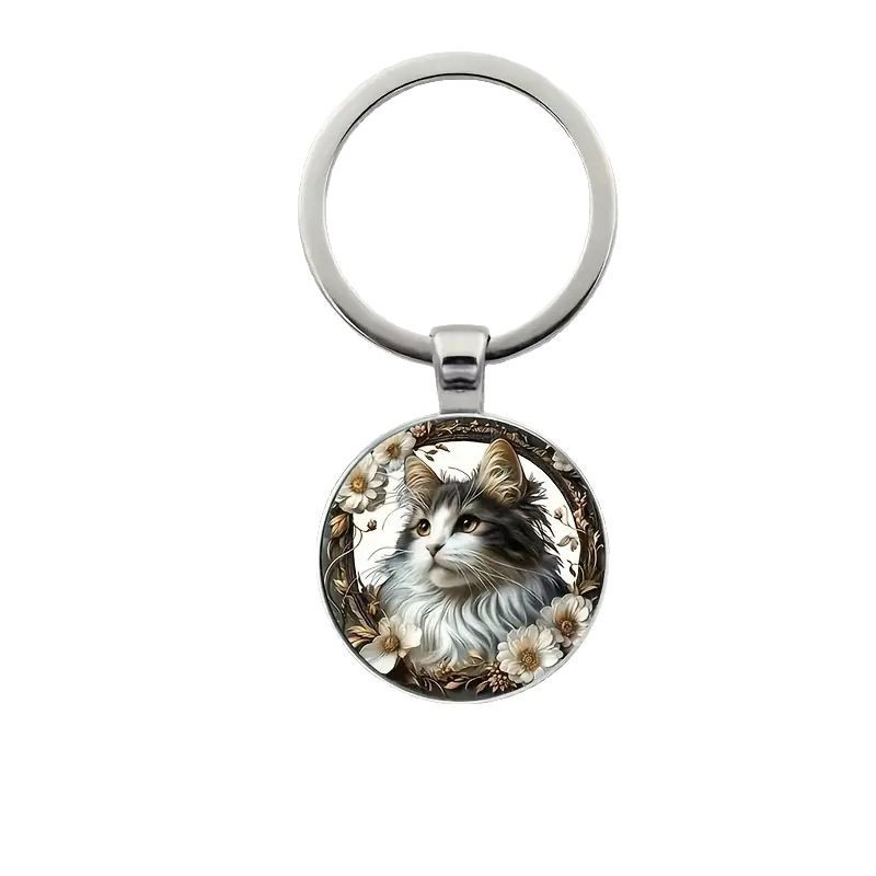 跨境  可爱小猫咪合金钥匙扣 - 男女通用装饰圆形钥匙链