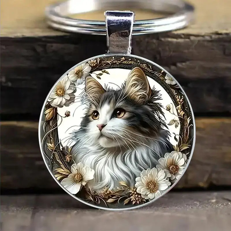 跨境 可爱小猫咪合金钥匙扣 - 男女通用装饰圆形钥匙链 English | 投诉