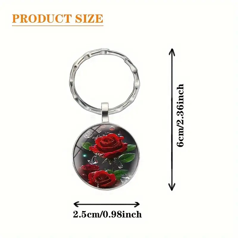 优雅红玫瑰圆形吊坠钥匙扣跨境欧美热销金属钥匙圈环挂件礼物 English | 投诉