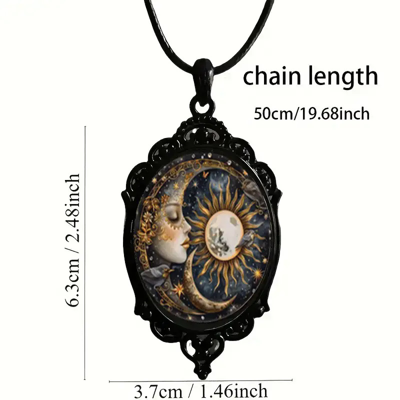 优雅的椭圆形水晶吊坠项链,优美风景图案和黑色框架复古浪漫珠宝 English | 投诉