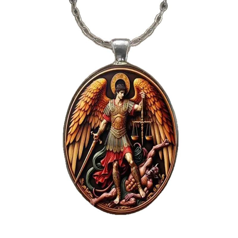 大天使长米迦勒项链圣迈克尔玻璃吊坠项饰品跨境欧美时尚项链女