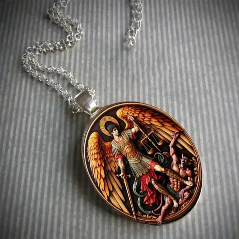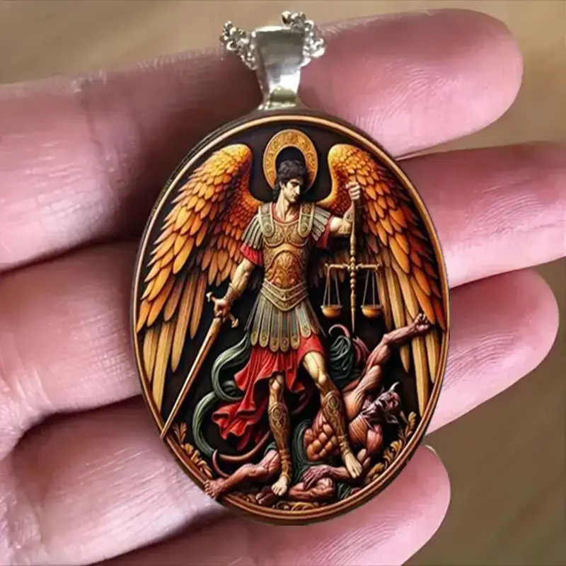 大天使长米迦勒项链圣迈克尔玻璃吊坠项饰品跨境欧美时尚项链女 English | 投诉