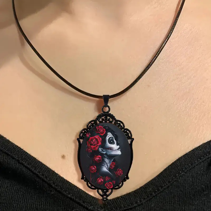 跨境 外贸 亚马逊 哥特式乌鸦,玻璃黑色吊坠项链 厂家直销