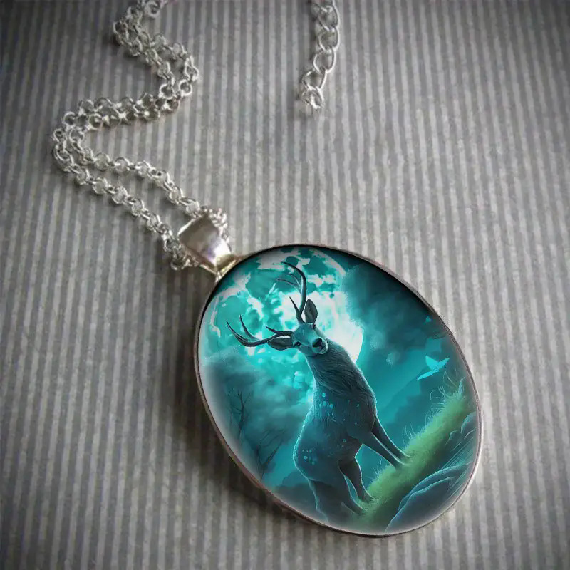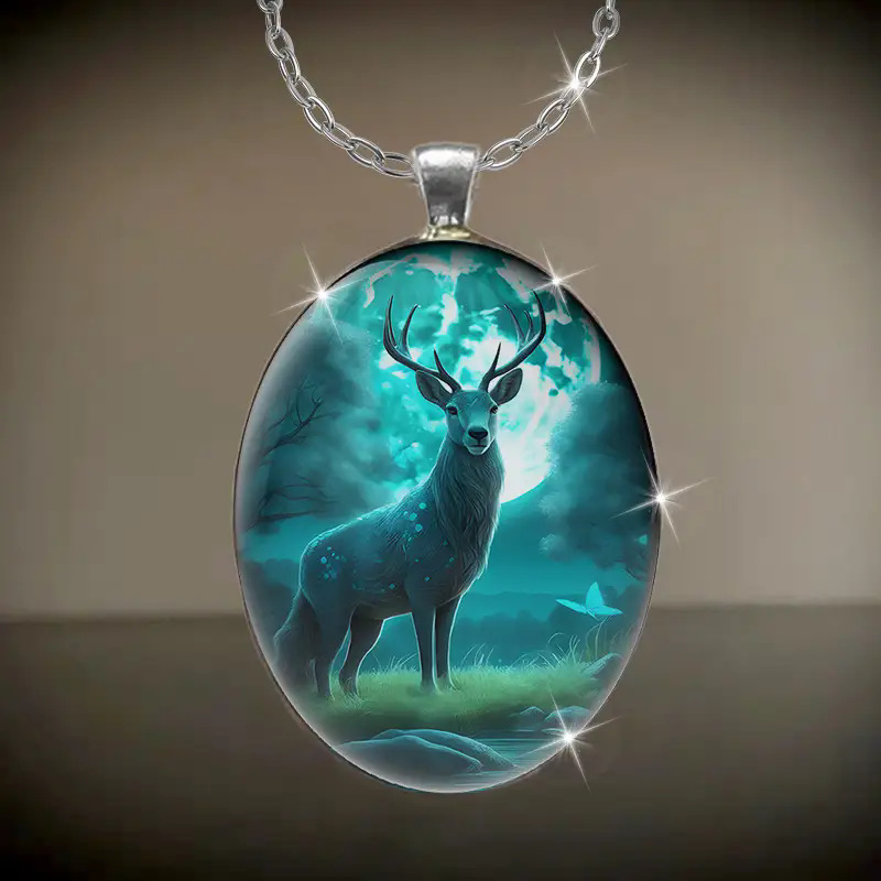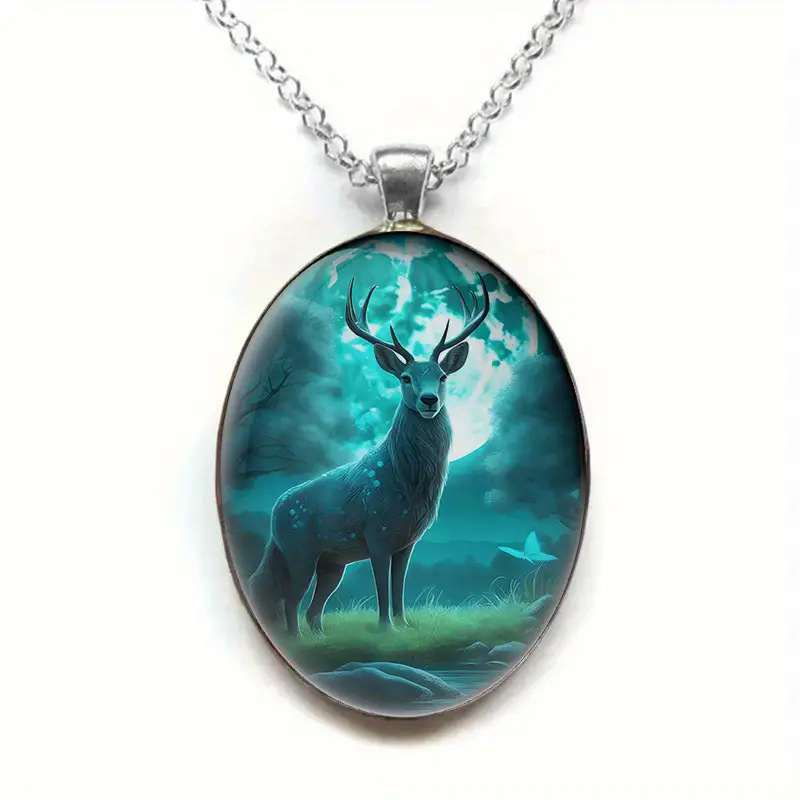 跨境temu创意水滴状吊坠丛林鹿项链潮男万圣节街头嘻哈饰品