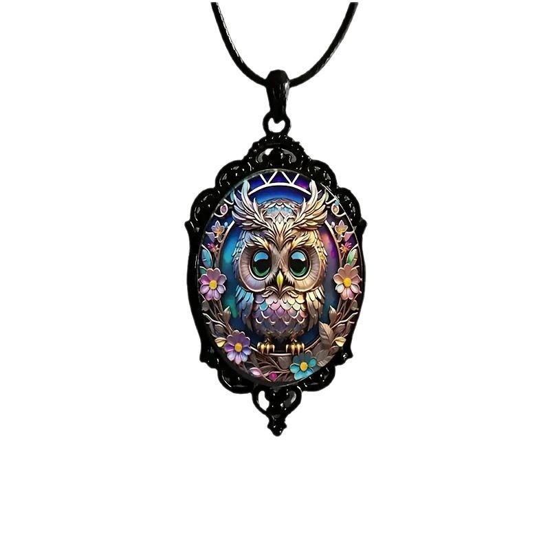 跨境爆款时尚简约黑色花边底托椭圆水晶吊坠项链带可定图案可批发 English | 投诉