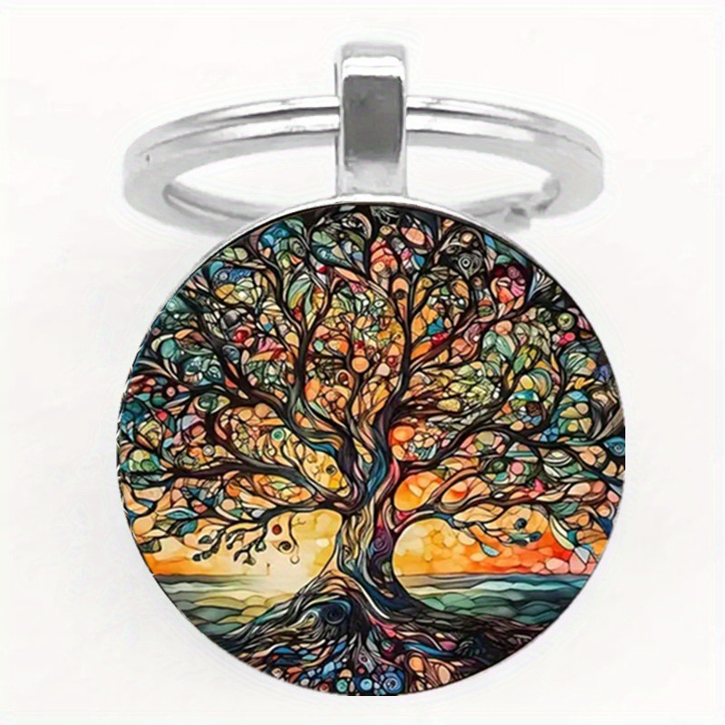 跨境新品彩色生命之树时光宝石钥匙扣挂件金属钥匙圈钥匙环小礼物