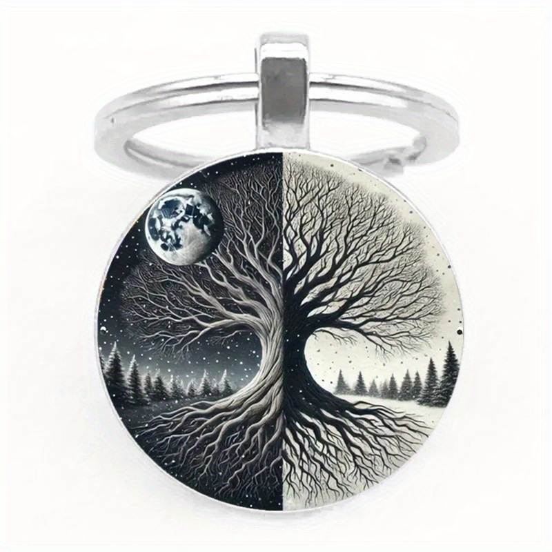 欧美跨境热卖生命之树时光宝石钥匙扣挂件
