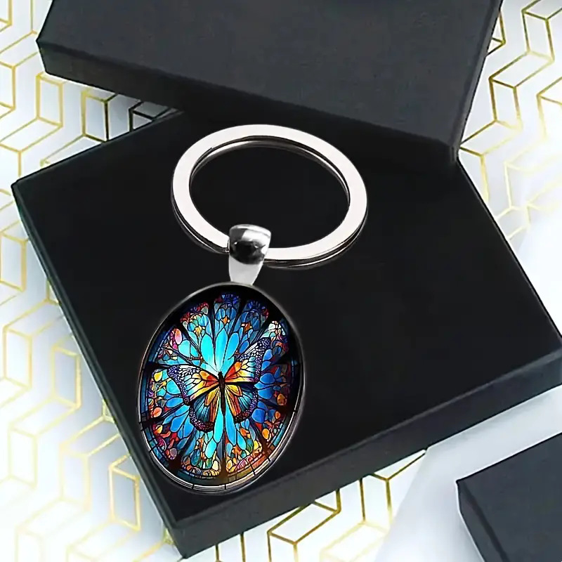 1pc创意彩色玻璃蝴蝶钥匙扣,男士和女士的时尚配饰礼物的朋友合