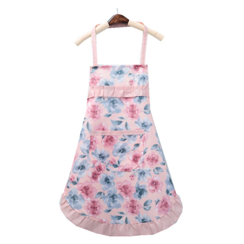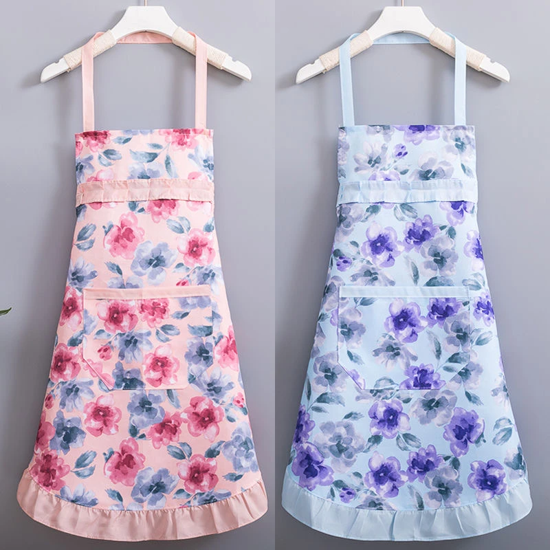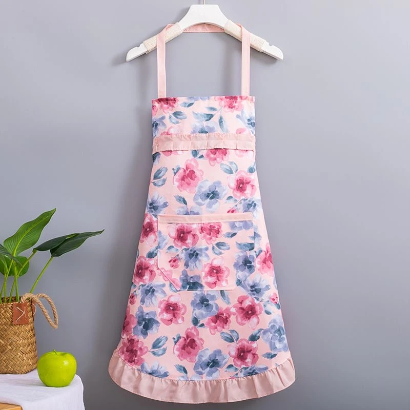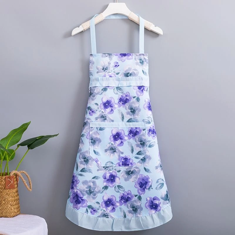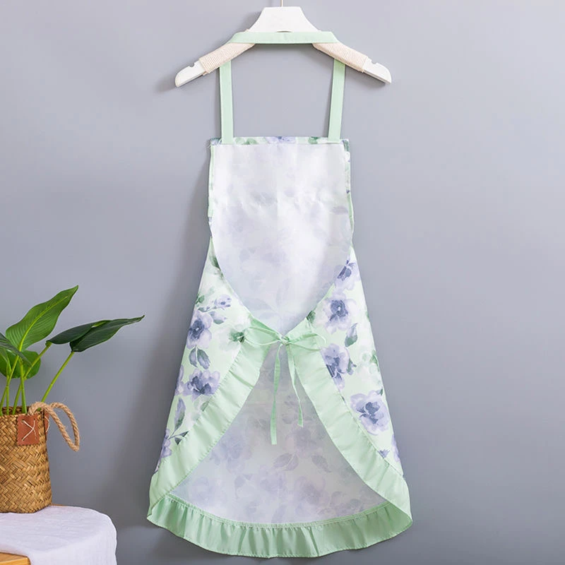 新款简约洋气公主挂脖碎花款围裙夏季薄款厨房家用透气围腰套袖女
