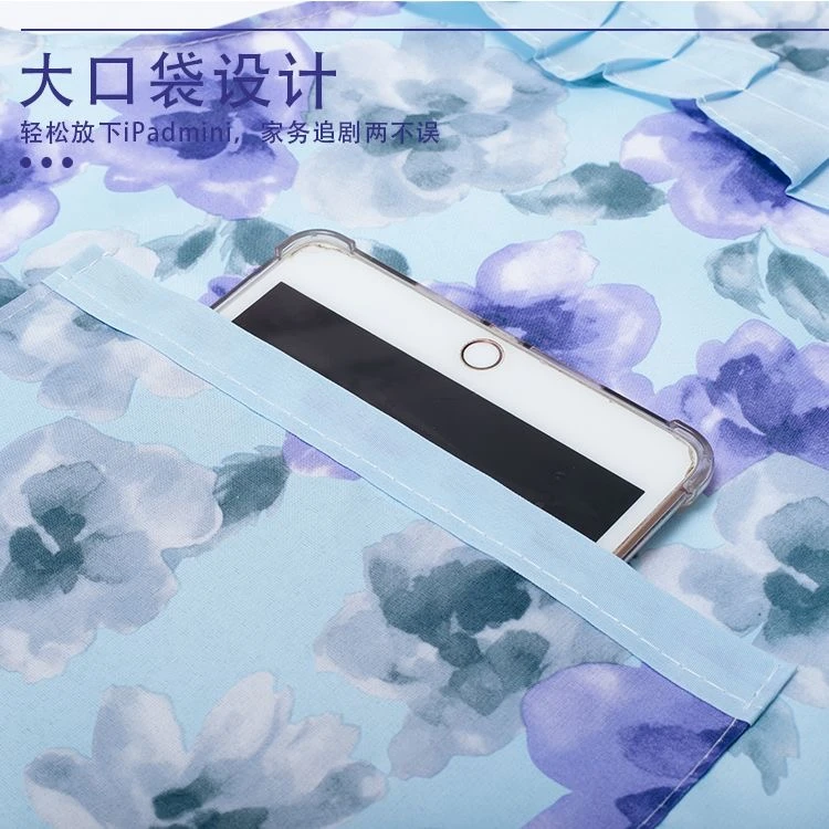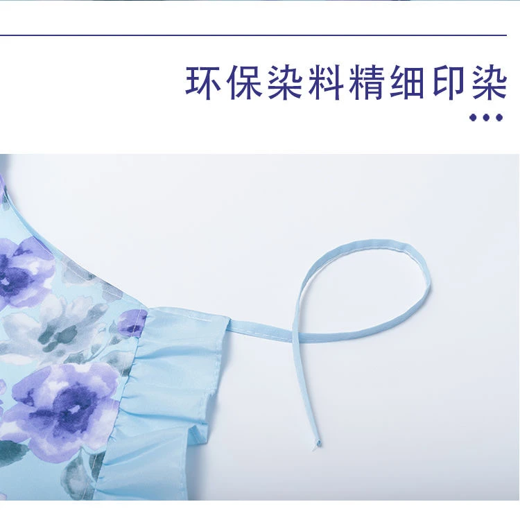 新款简约洋气公主挂脖碎花款围裙夏季薄款厨房家用透气围腰套袖女 投诉