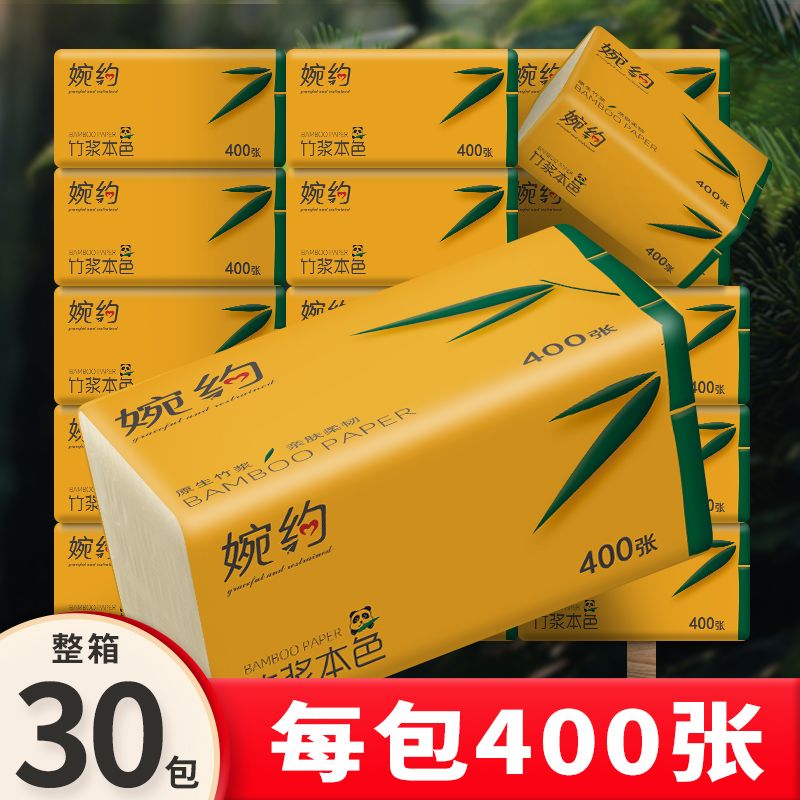 婉约400张/包竹浆本色纸巾纸抽家用抽纸餐巾纸擦手纸卫生纸批发